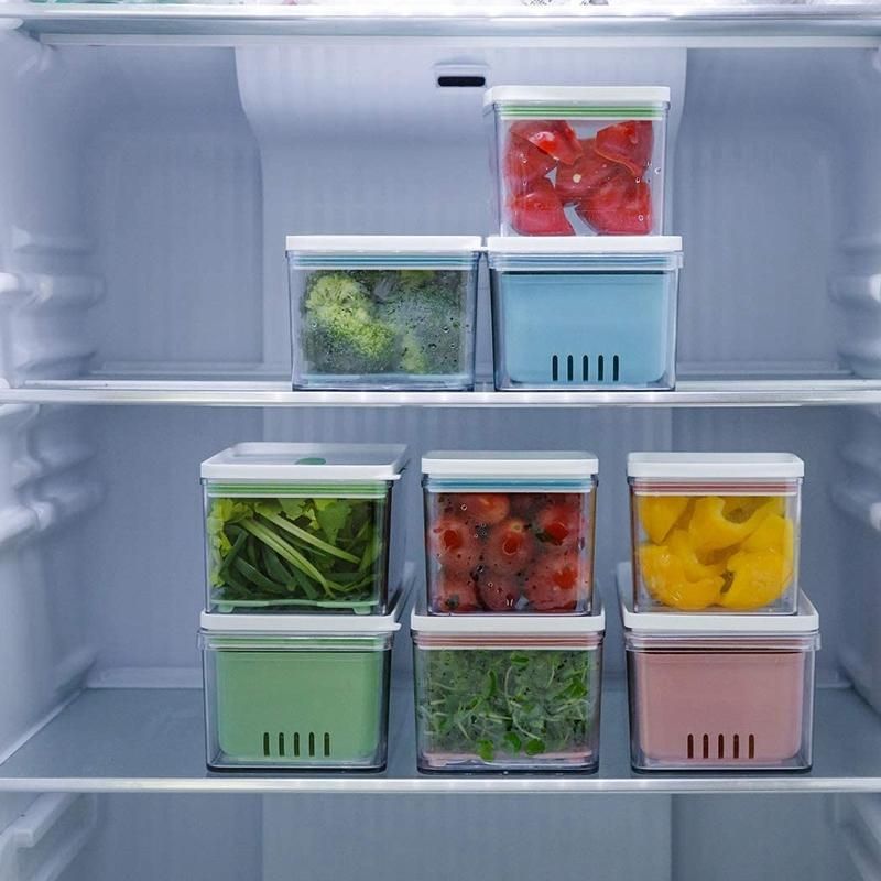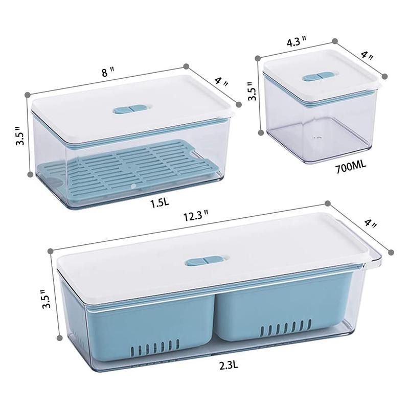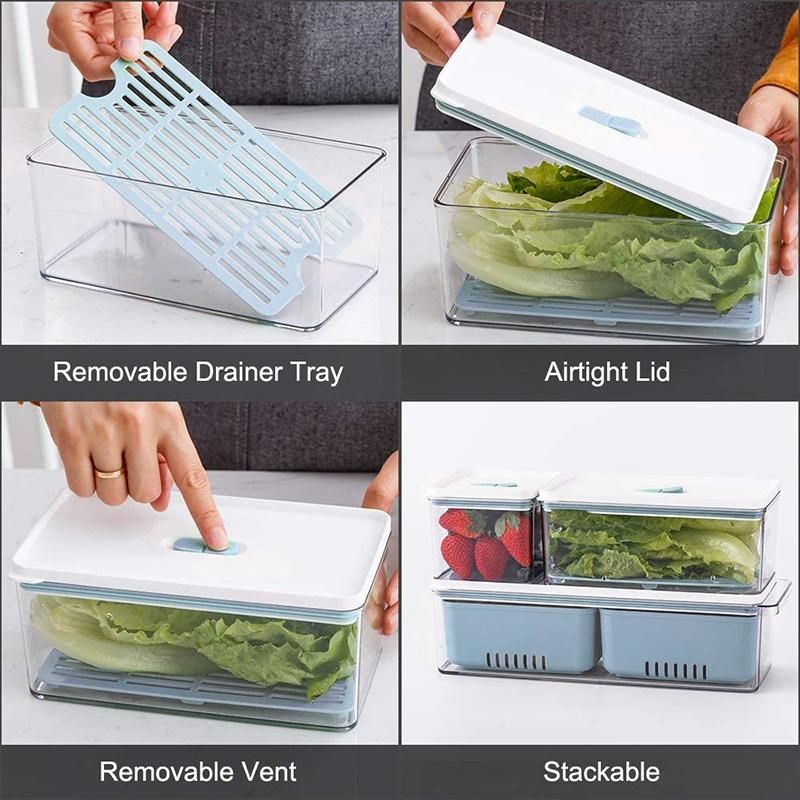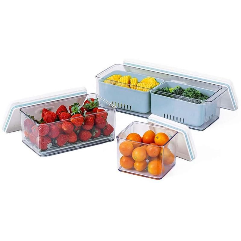Multi-functional - You can use these in your refrigerator, pantry, cabinets, or just on the kitchen countertop. You can use the drain tray for meat or fruit, for regular food, just take out the tray. For the container, you can use the 2 separate removable drainable containers for different foods, or just use it as a whole. Material:plastic