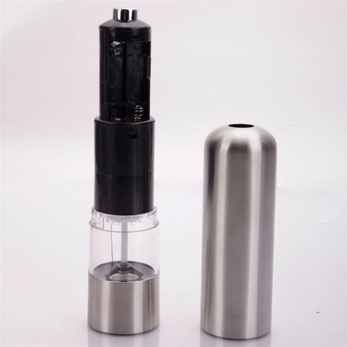 Enjoy freshly ground seasoning on your food with this Stainless Steel Electric Automatic Pepper Mill Salt Grinder! Powered by batteries, it grinds salt and pepper automatically when you press the button on top. Moreover, you can adjust the fineness of the grind to suit your needs. See-through container lets you know the remaining pepper level. Made of high-grade stainless steel with a brushed finish, it is easy to clean while elevating your table decor style. Click and order right now!