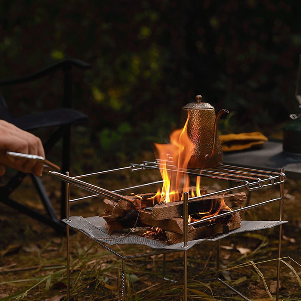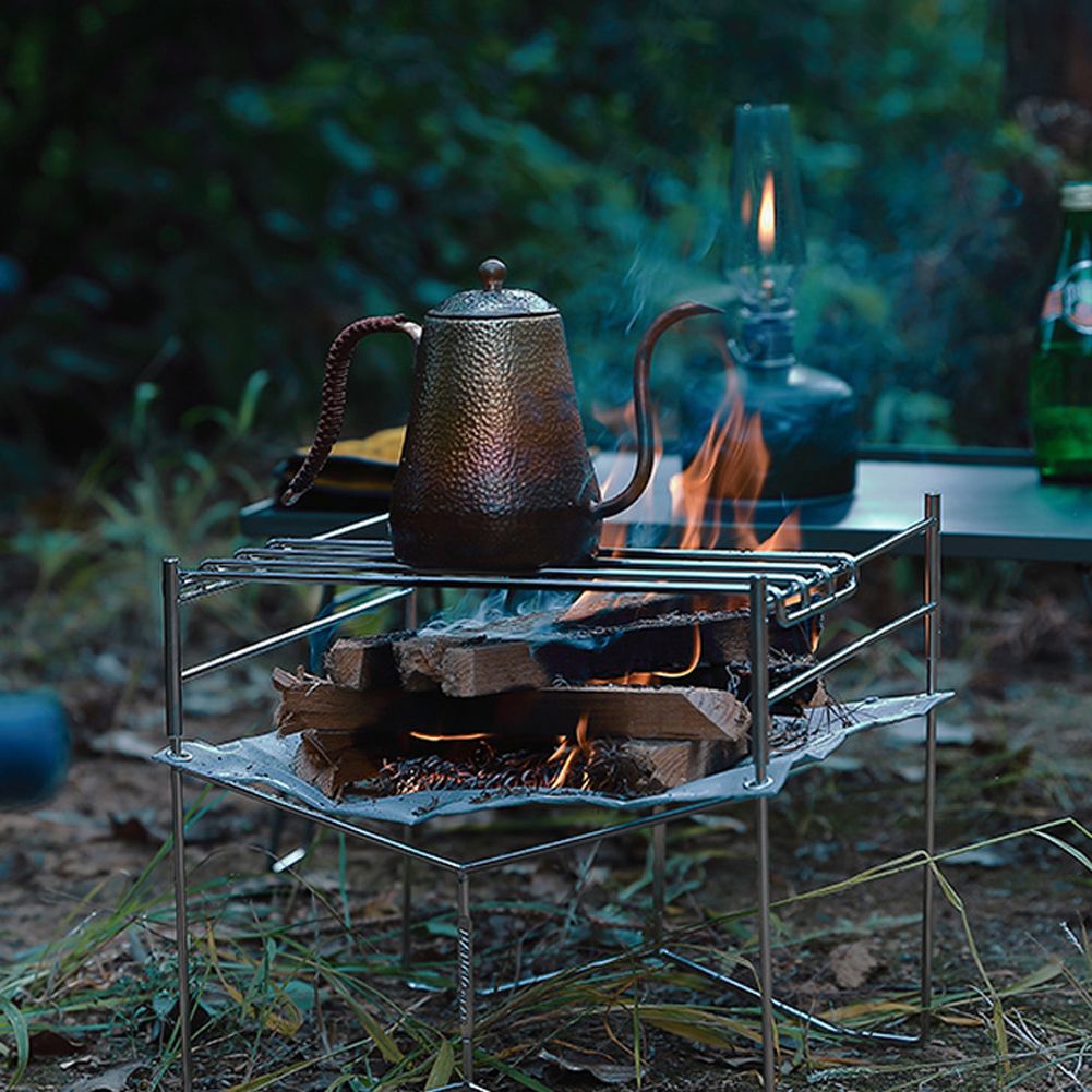 Below you can use burner, ga s stoves, charcoal, etc. on the bracket, you can put cooker or pot.