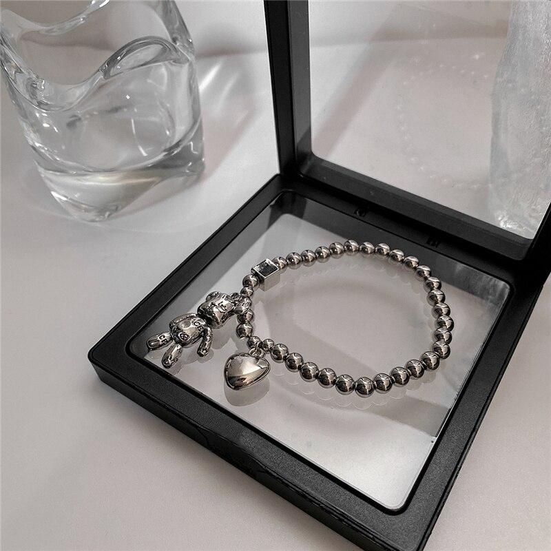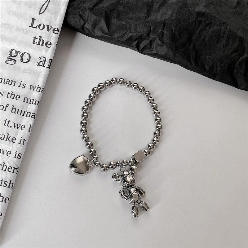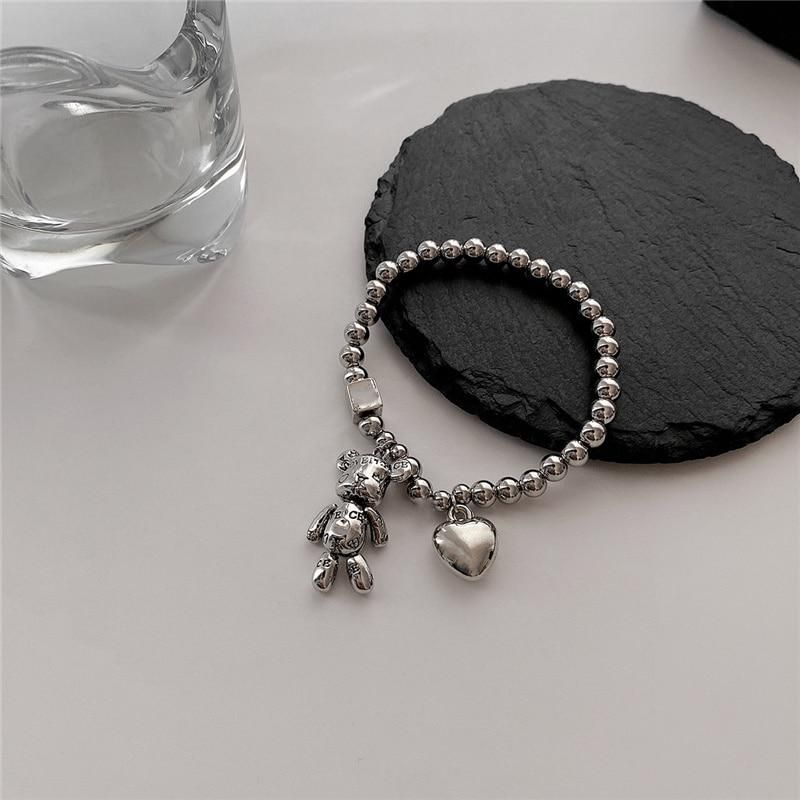 Buy Stainless Steel Bear Love Charm Bracelet For Women Silver Color String of Beads Chain Bracelets Party Gift Trendy Jewelry 2022 in Nigeria
