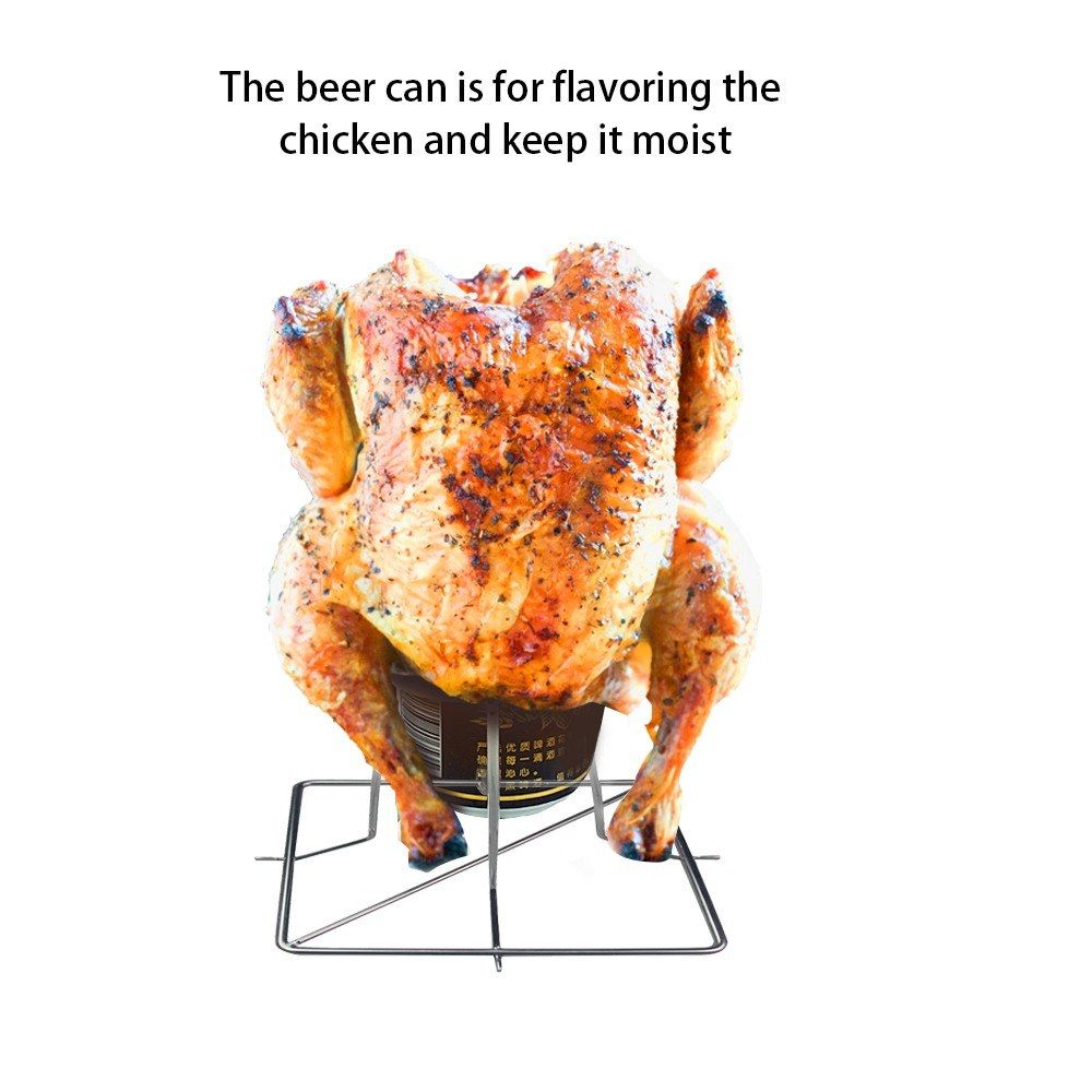Sturdy stainless steel construction: The beer can chicken rack is made of unique stainless steel. It has superior strength and durability and can hold chicken upright nicely by a beer can.
