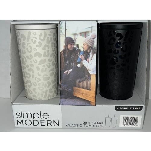 Buy Stainless Steel Bottles With Six Bonus Straws - 2pack - 24oz - Black & White Leopard in Nigeria