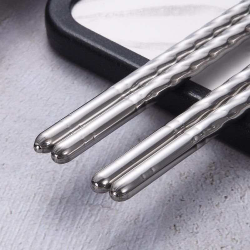 Buy Stainless Steel Chopsticks Korean Style Metal Chopsticks Round Children's Adult Chopsticks Threaded Non-slip Handle Chopsticks in Nigeria