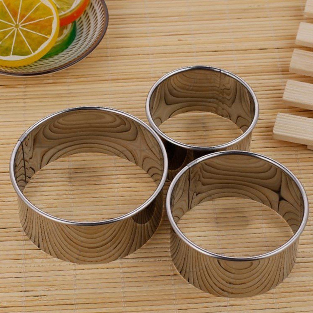The molds of three different sizes are made of stainless steel so they are durable. They can be used as food round molds to shape food into circles. You can cut cookies, pastries, dough, crumpets, and English muffins with ease. Just have fun in your kitchen.
