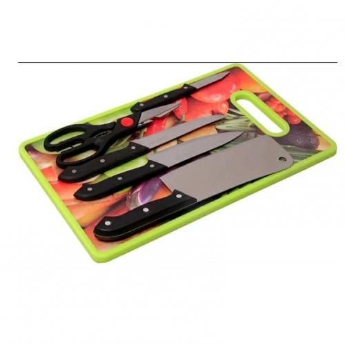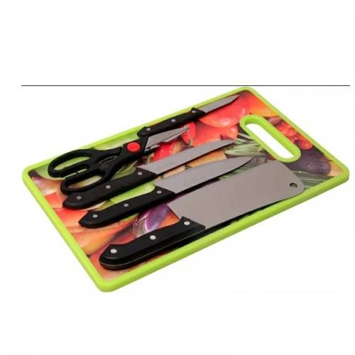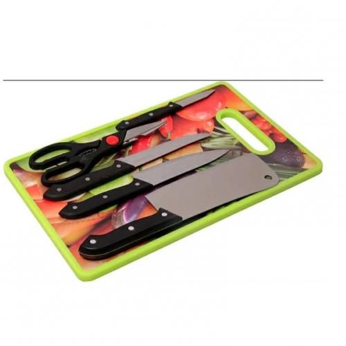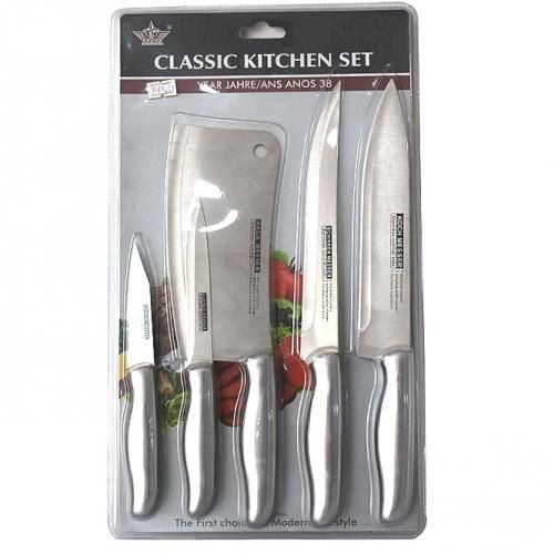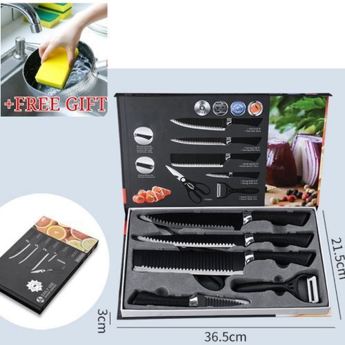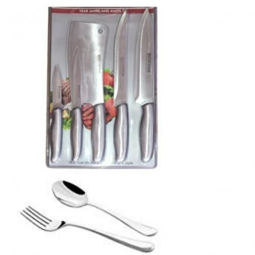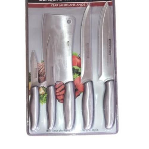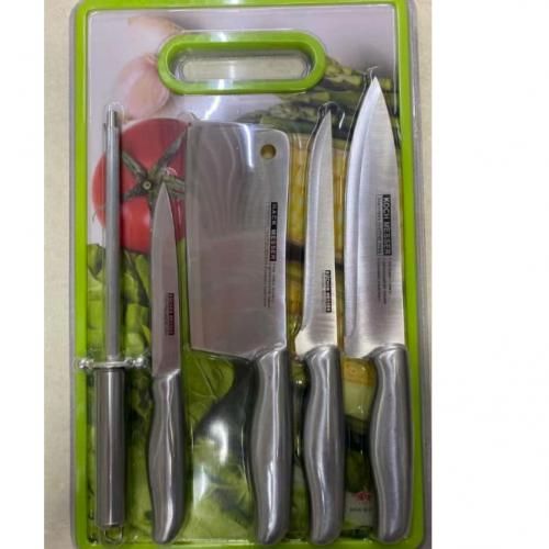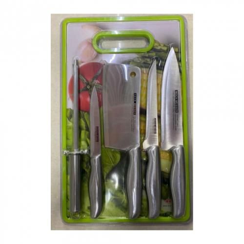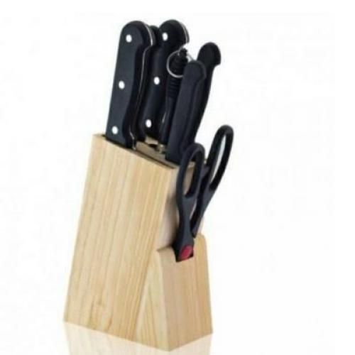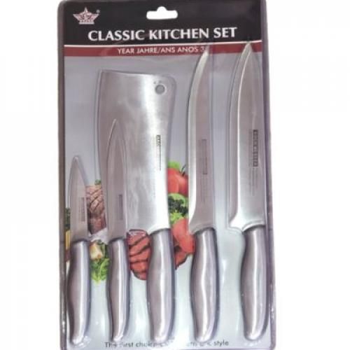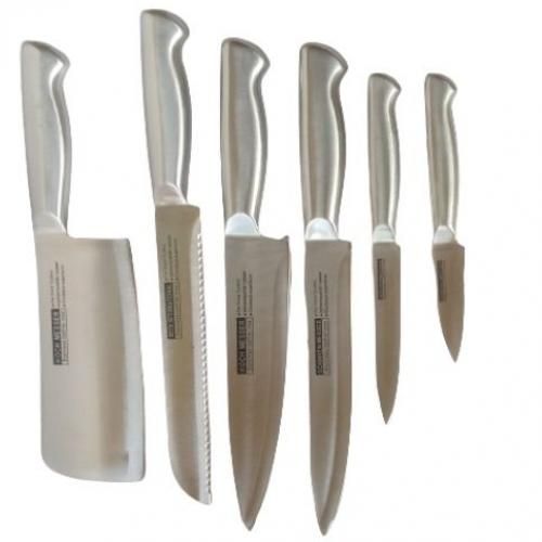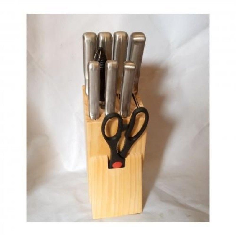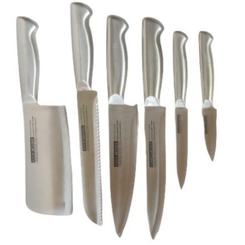 It consist of normal kitchen knives, cutting knives, mini cutlass use for cutting bony fish, chicken, turkey, etc. It is made of pure metal blade. It does not rust, very strong, sharp, easy to wash and store.. This is a must have for every kitchen and a great value for money.