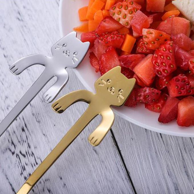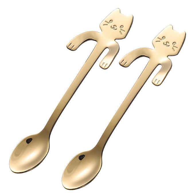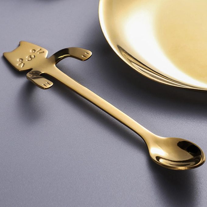 Stainless steel cat coffee spoon, cute cartoon cat design, multiple colors to choose from.