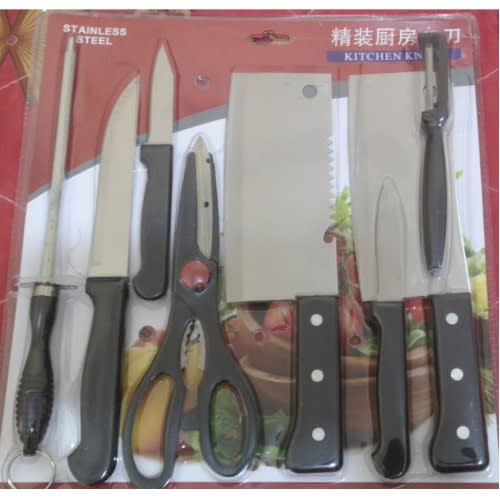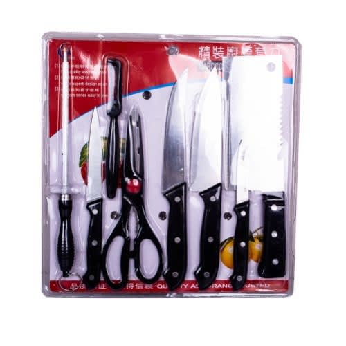 This Sets of Kitchen Knife, consist of different sizes of knives with different function. It consist of kitchen knives, pricing knife, scissors, mini cutlass use for cutting bony fish , chicken, turkey etc . It is made of metal blade and abs plastic head. It does not rust, very strong, easy to wash and store, a must have for every kitchen and a great value for money.This Sets of Kitchen Knife, Sharpener and consist of different sizes of knives with different function. It consist of kitchen knives, pricing knife, scissors, mini cutlass use for cutting bony fish , chicken, turkey etc It is made of metal blade and abs plastic head. It does not rust, very strong, easy to wash and store, a must have for every kitchen and a great value for money.