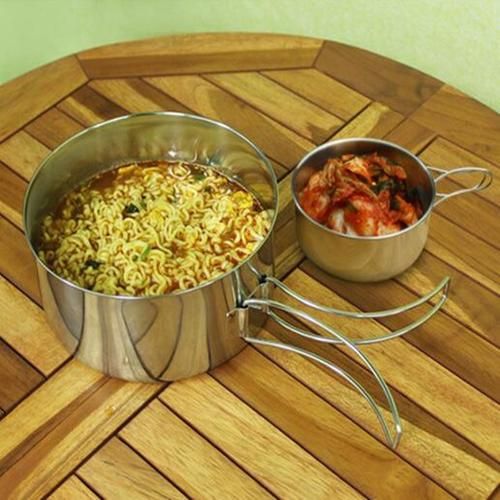 Buy Stainless Steel Cookware Set Outdoor Camp Cooking Cook Set Folding Camping Pot Frying Pan Bento Pot For BBQ Picnic Backpacking in Nigeria