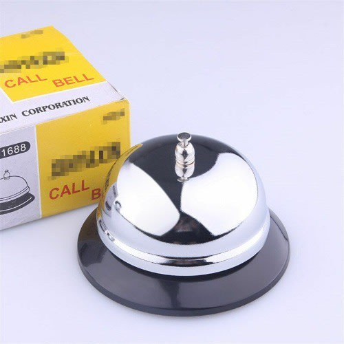 This stainless steel bell features a one touch button and is loud enought to be heard throughout the room, Restaurant Hotel, office, church, waiting areas or hotel lobbies.etc