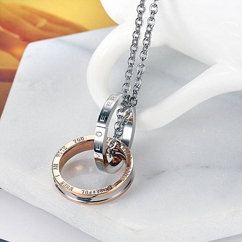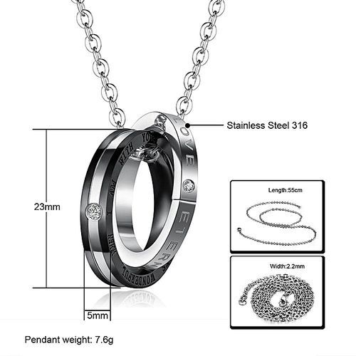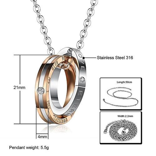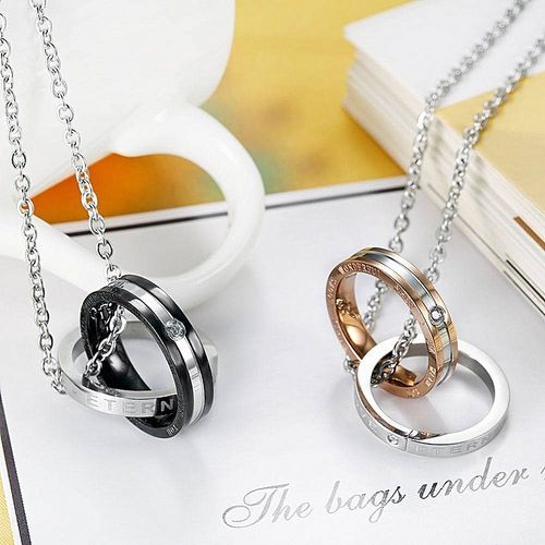 Specifications of Fashion Stainless Steel Couples Eternal Love Pendant Double Ring Necklace With Chain SKUGE779OT16AN5BNAFAMZ Weight (kg)0.0025 NAFDAC Reg. Numberno