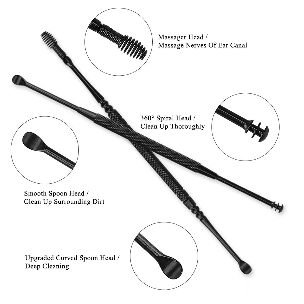 360 deg; Spiral ear spoon, remove dirt inside the ear thoroughly.