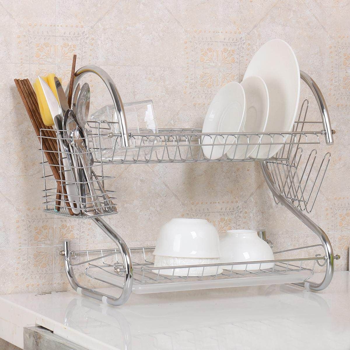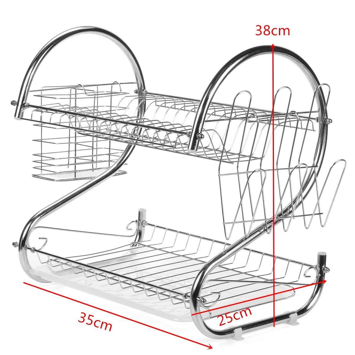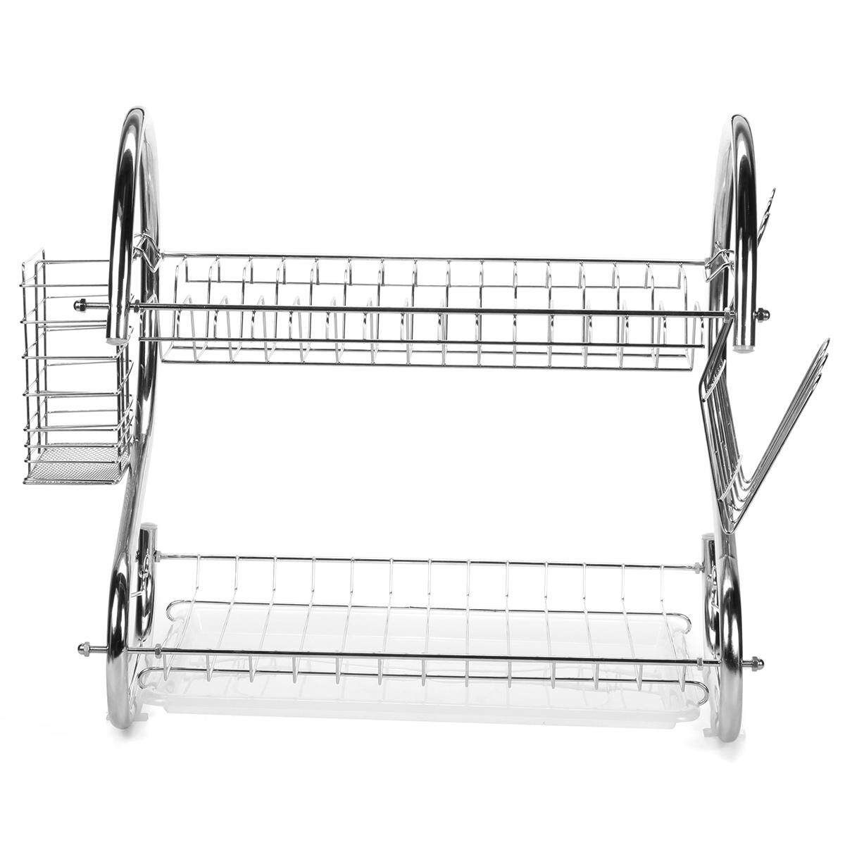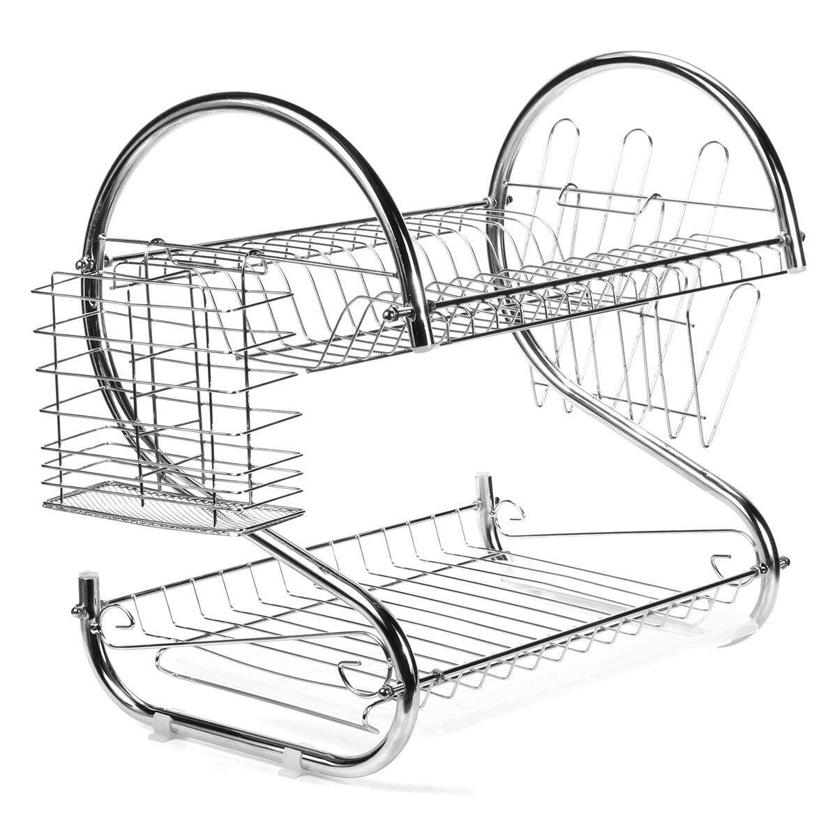Multifunction 2Tie Plate Cutlery Cup Drainer Holder Rack Drip Tray Chrome Sliver