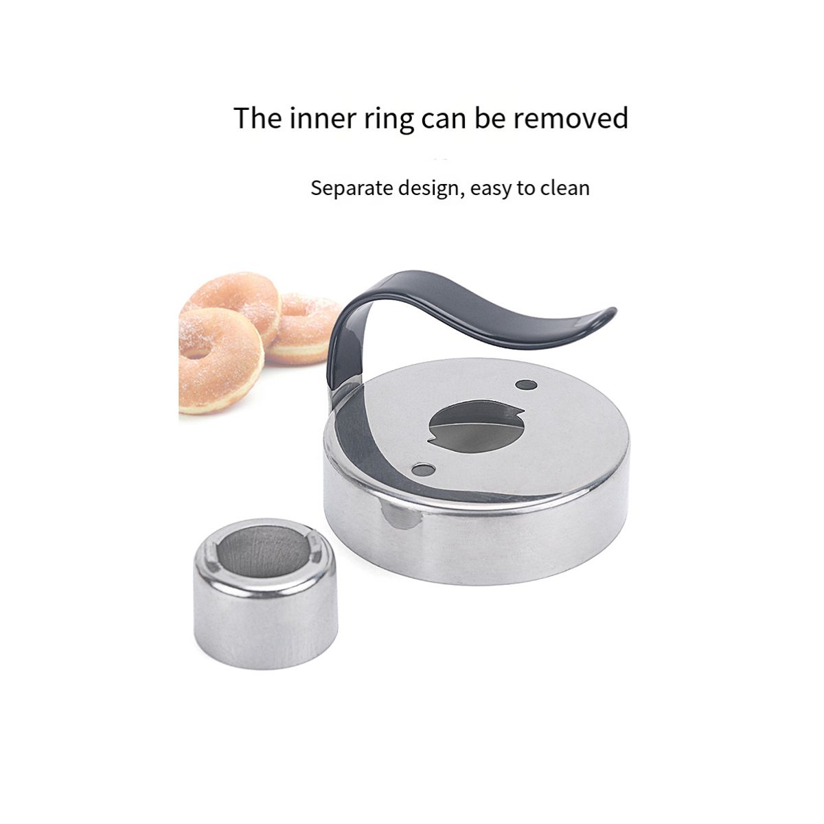 2. Made of food contact grade high hardness 430 stainless steel. Cuts traditional doughnuts, Slices through the dough.