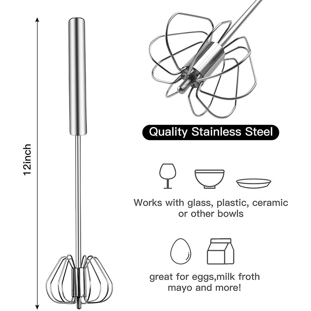 [Easy to Clean]The stainless steel whisk measures 12 inches and fits most containers. After use, simply wash with soapy water.