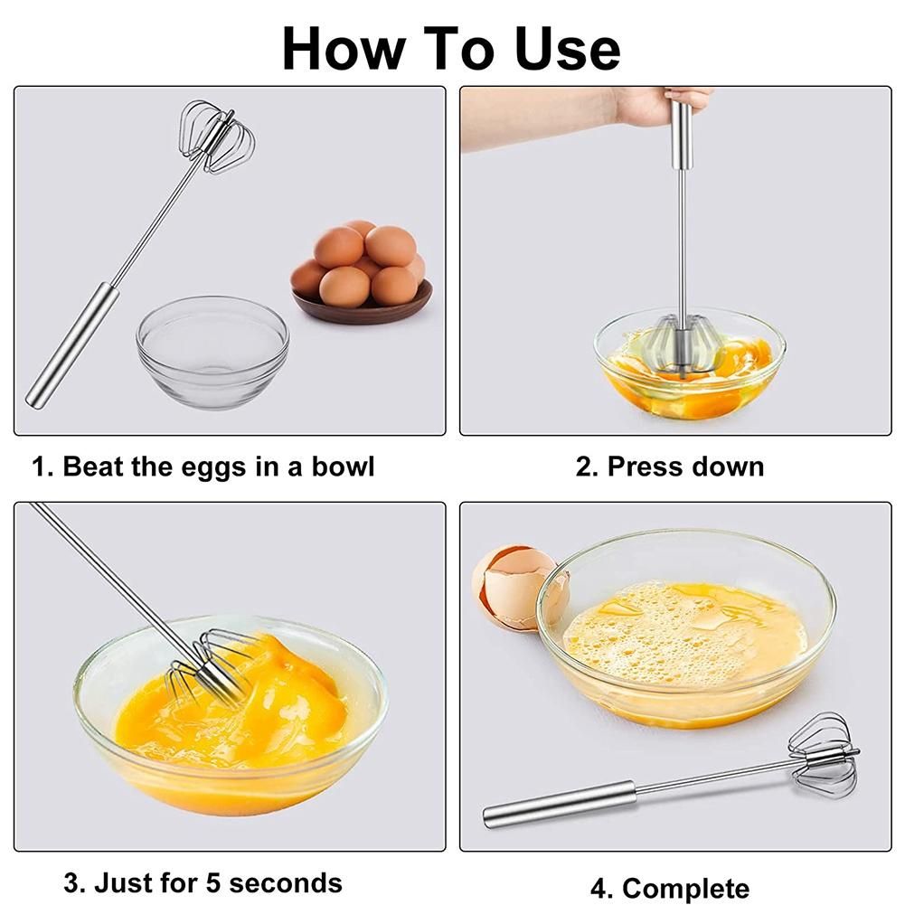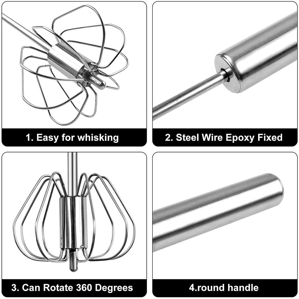 Detailed Information About The Product:[Material]The egg whisk is made of stainless steel, which is durable and not easy to oxidize. The handle is ergonomically designed and easy to hold, making your baking process easier.