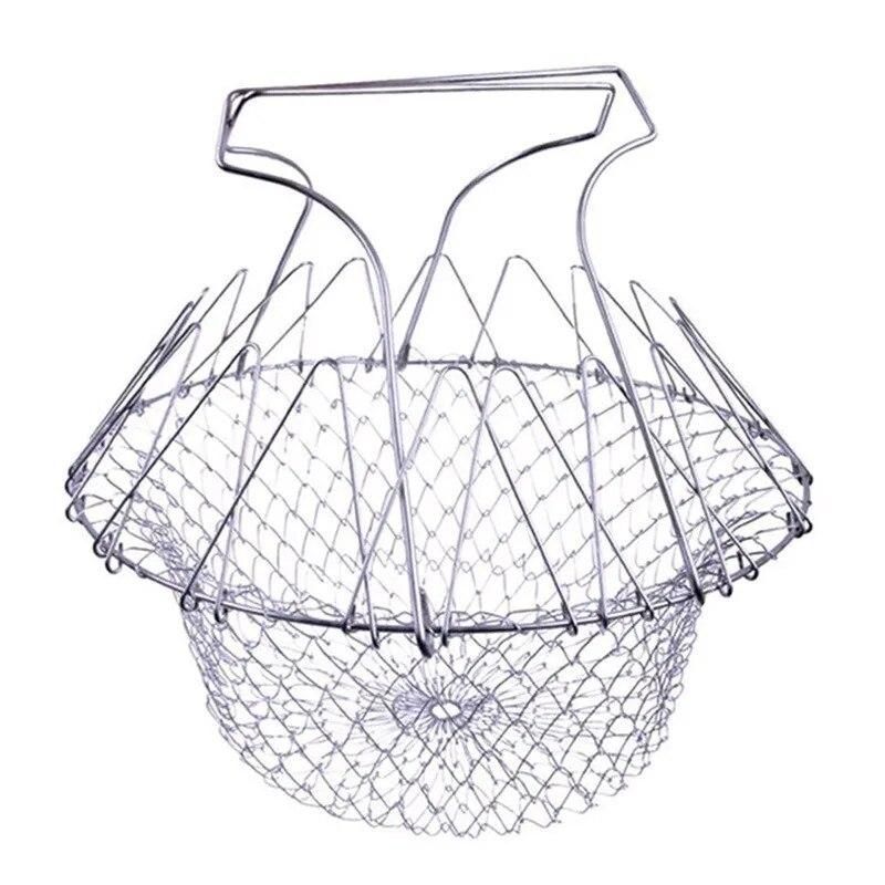 Buy Stainless Steel Folding Fried Potato Basket Colander Multi Functional Kitchen Tool for Boiled Fried Fruits Vegetable Drainer in Nigeria