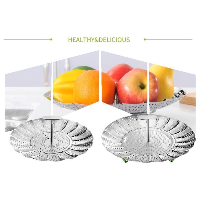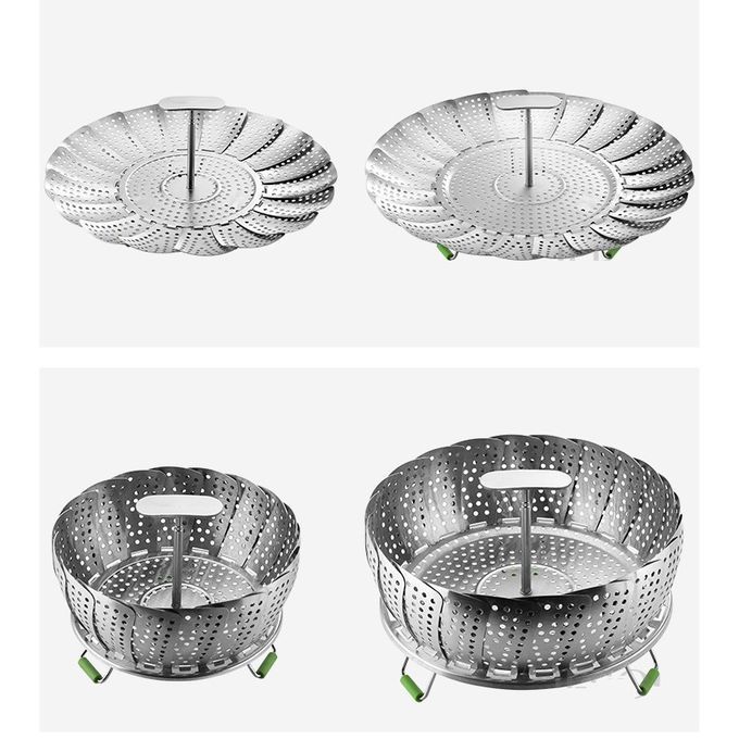 Product Name: stainless steel 11-inch telescopic handle steamerMaterial: food grade stainless steelSpecifications: high 9.2 * diameter 18 cm (folding)/high 22.5 * diameter 28 cm (open)Net Weight: 295GPackage: colorful box (customizable, please Consulting customer service for details)Box gauge: 38.5x38.5x33 CM 20 PCS 8.5 KGUse: used in put it in steamer in waterproof cooking foodThe product uses made of food grade stainless steel material composite the eu lfgb and FDA can contact food grade.Health standard, safe and healthyLeaf by polishing processing, edge polishing sleek does not damage hand, petal modeling design, simple artisticFoldable petal modeling, can according to different steamer size adjustment, easy to use, simple operationBottom with triangular anti-slip holder, durable