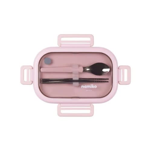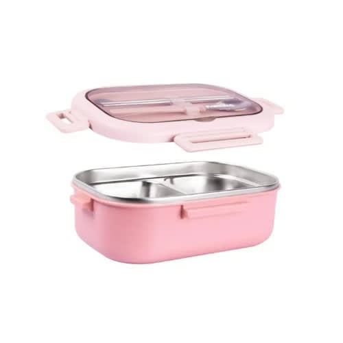 Buy Stainless Steel Food Box With Lock Lid, Spoon & Chopsticks - 850ml - Pink in Nigeria