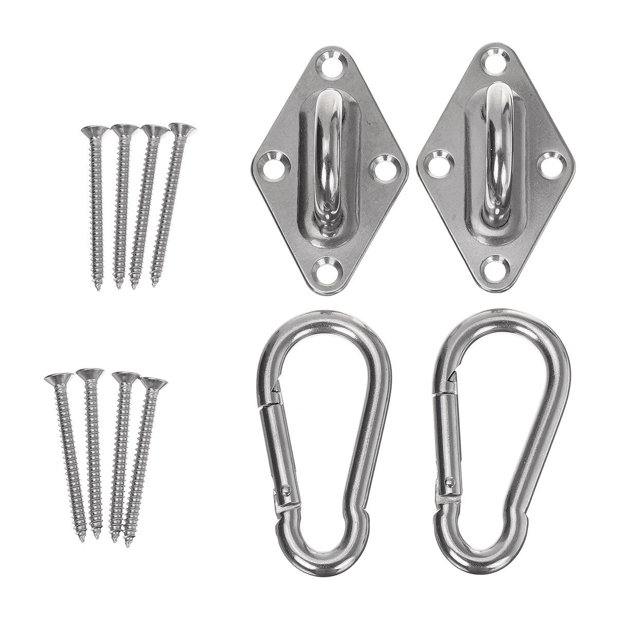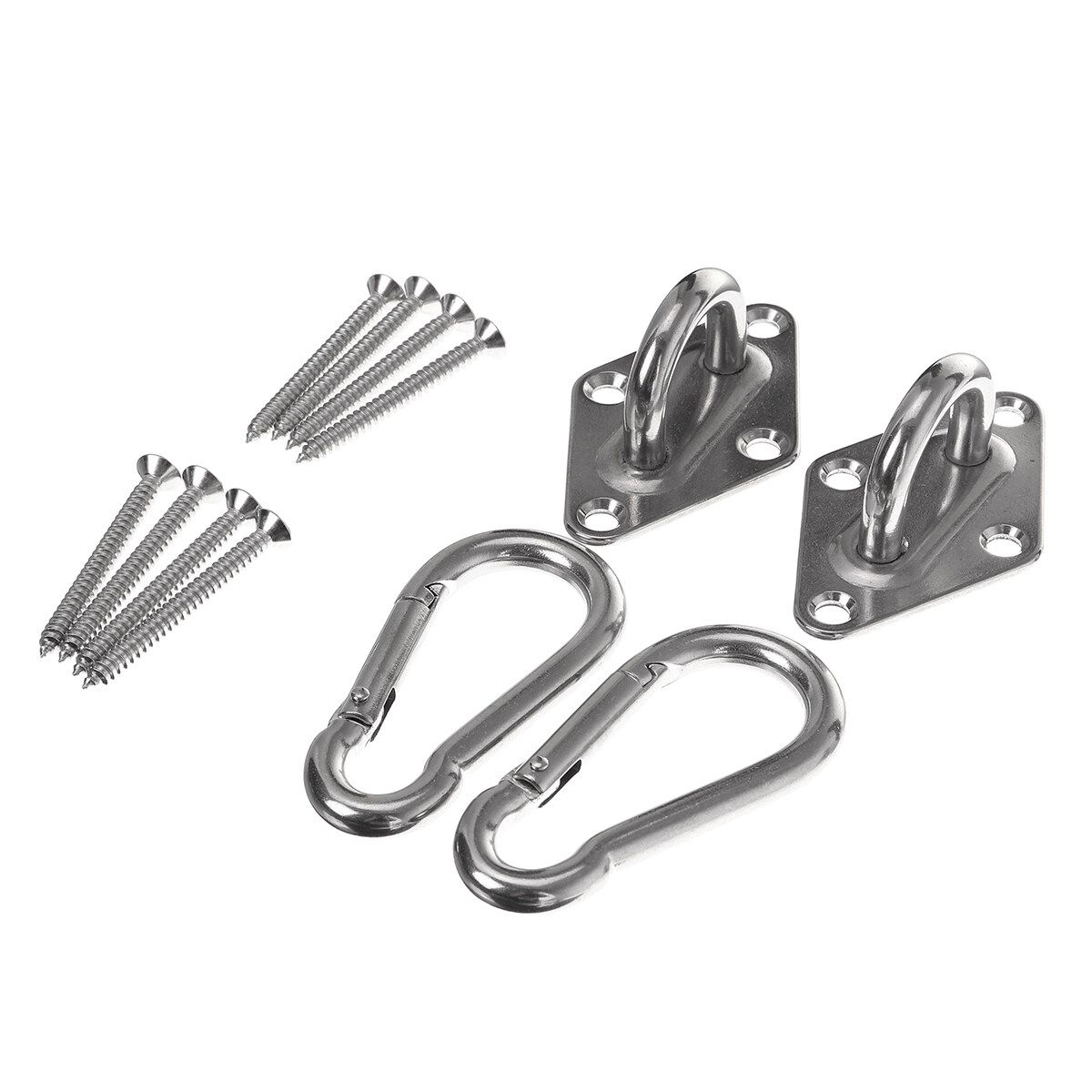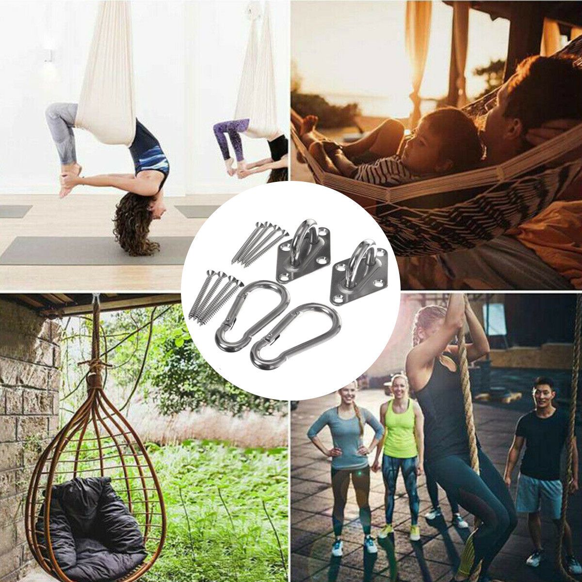 Stainless Steel Hammock Swing Hook Fixed Plate Hanging Chair Sandbag Buckles Tool Kit Specification:Type:Hammock Swing Fixed ToolMaterial:304 Stainless SteelColor: SilverQuantity:12Pcs/Set(1cm=10mm=0.39inch)Package Included:2 x Ceiling Mounting Plate2 x Carabiner8 x Screws(Not included the hammock,swing and hanging chair.)Features:100% and high quality.With Stainless Steel material, it can be used in hammock fixed and baggage bundles, etc.Mounting plate securely bolts into beams, boards or any overhead surface.increase the lifespan of your hammock, in addition your mounting surface.Perfect for Hammock Chairs, Porch Swings, Swinging Chairs, Punching Bags, or hanging any heavy object from an overhead mount.Notice:1.The real of the item may be slightly different from the pictures on website caused by many factors such as brightness of your and light brightness.2.Please allow slight deviation for the measurement data.3.Please allow 1-3cm error.Ifyouhaveanyquestions,pleaseletusknown.HopeyouhaveahappyshoppingtimeDetail Imageimg data-cke-saved-src="https://my-live-02.slatic.net/p/681f51b7e882c1b142a6975a5e84e6c1.jpg" src="https://my-live-02.slatic.net/p/681f51b7e882c1b142a6975a5e84e6c1.jpg" iswm="truePayment1.We accept .