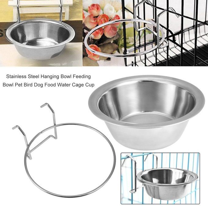 Stainless Steel Hanging Bowl Feeding Pet Bird Dog Food Water Cage Cup Silver