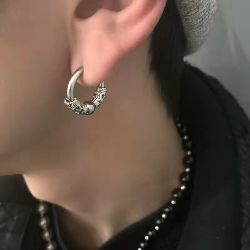 Package includes: 1 *earringsCool Punk Men's Stainless Steel Hip Hop Stud Earrings Round Earring Pendant For Men Earings Jewelry Sliver Plated For Gifts Name: Retro personality dragon totem earringsMaterial: Stainless steelSize: 2.5*12MMColor: blackStyle: UnisexS