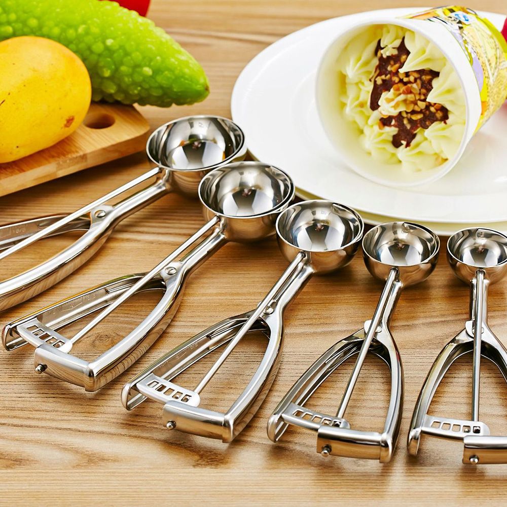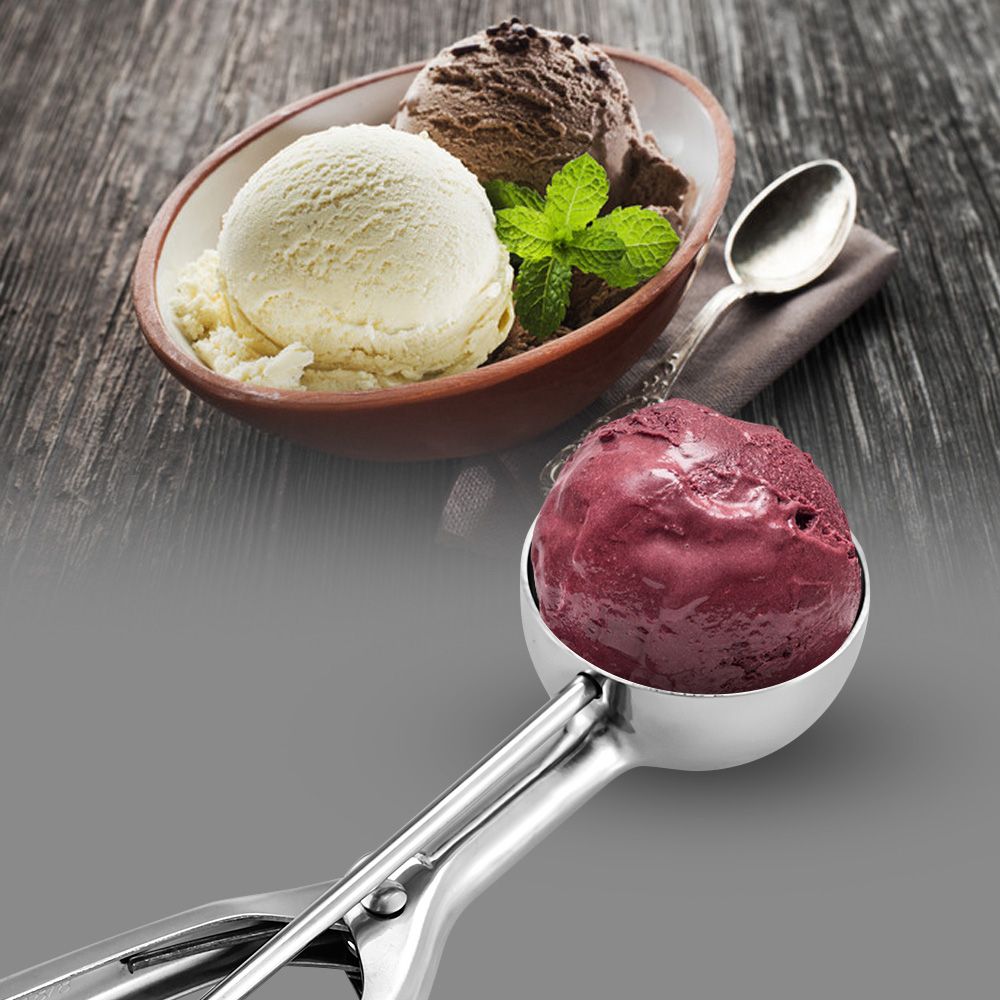 This anti-rust stainless steel food scooper can help you easily create beautiful balls of ice cream, melon, sorbet, sticky dough, meatball, etc.