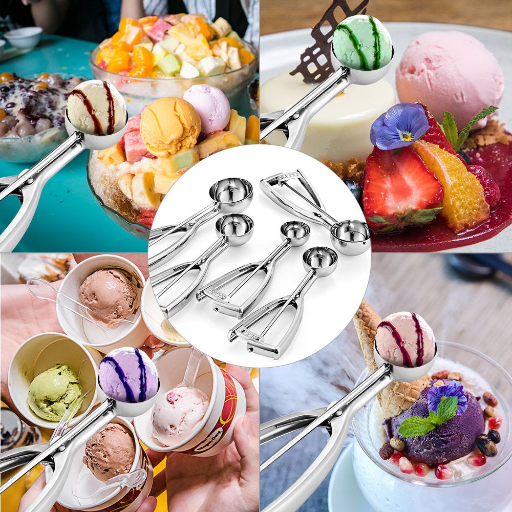 [Wide Applications] This scooper can help you easily create beautiful balls of ice cream, melon, sorbet, fruit, cookies, sticky dough, meatball, etc.