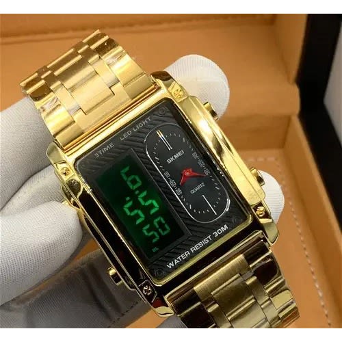 Buy Stainless Steel Men Luminous 3 Time Waterproof Led Wrist Watch Gold in Nigeria
