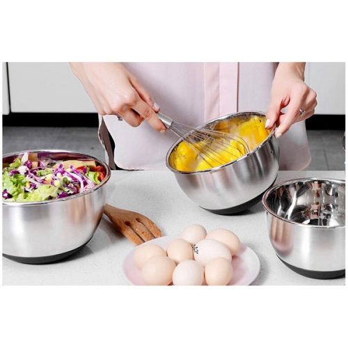 The mixing bowls can be stacked in kitchen or on counter, they can save the space and make the kitchen or counter to be tidy. You can manage the space efficiently.