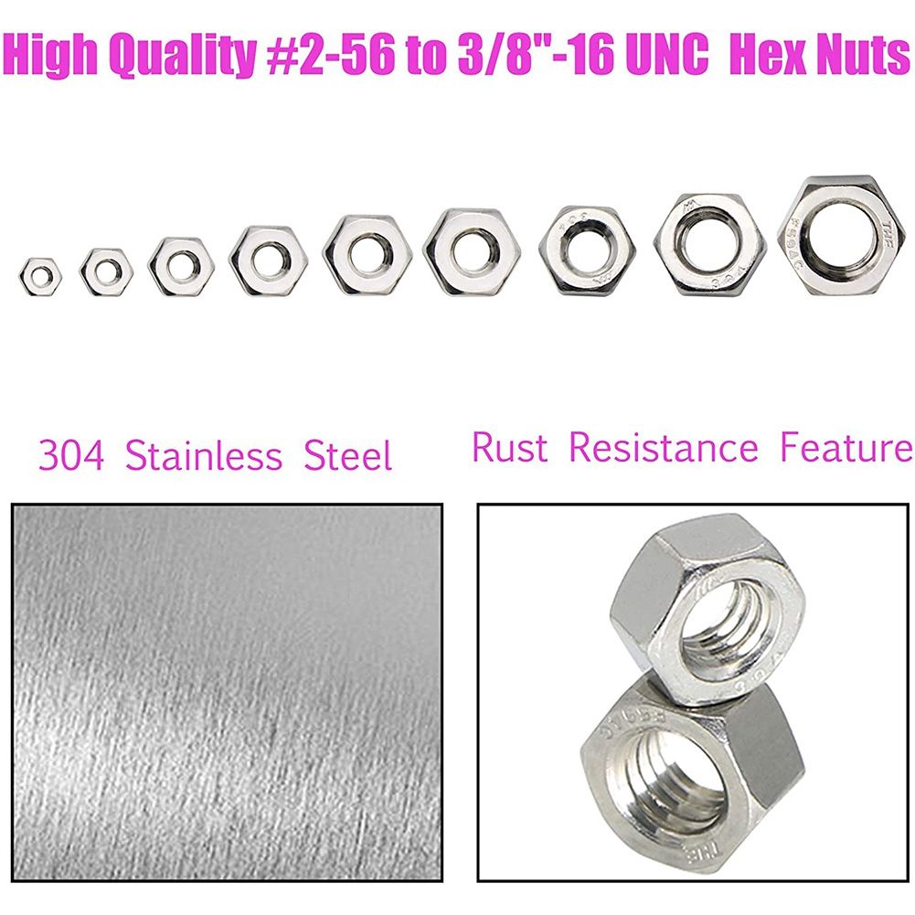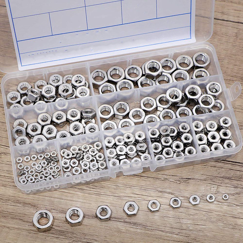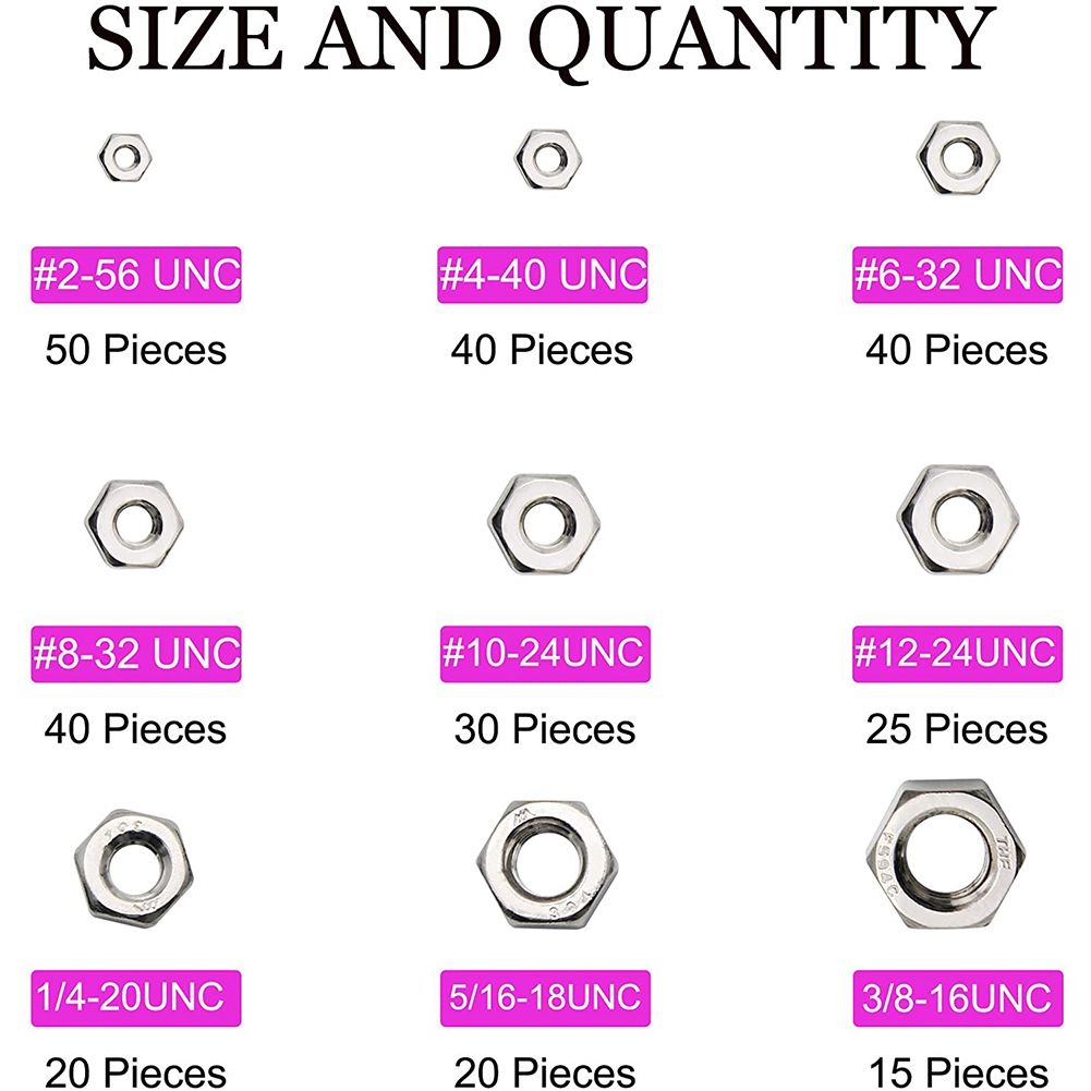 [APPLICATIONS]Stainless Steel SAE Hex nuts Serves a wide range of use and for professionals, amateurs, landlords, repairmen, other DIY . The set is perfect to replace broken and missing nuts. When you are mad for the missing nuts, it is a perfect friend for you