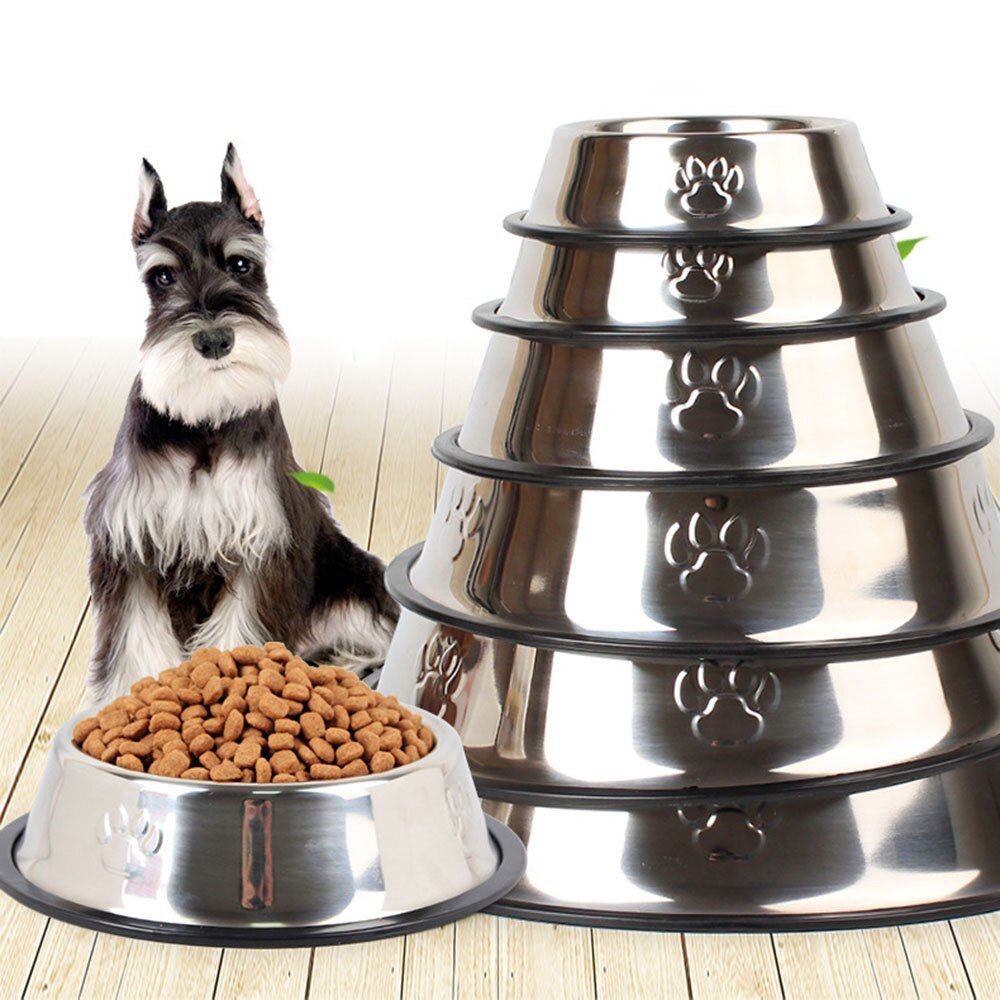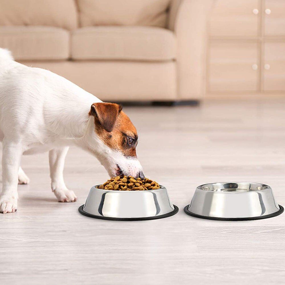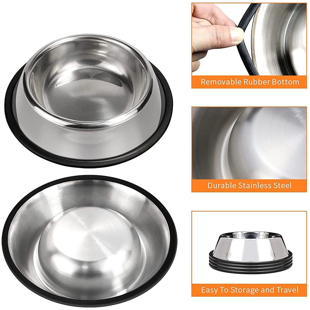 1X Stainless Steel Pet Bowl with Anti-Skid Rubber Base Dog Dish Puppy Feeder Bowl and Water Bowl for Dog Pet Cat Kitten Supplies