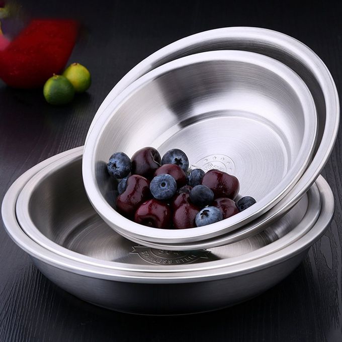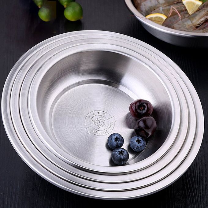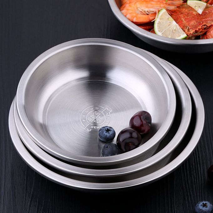 Stainless Steel Plate Dish Plate Dumplings Deep Dis Deepening Thi K Plate-silver-20cm