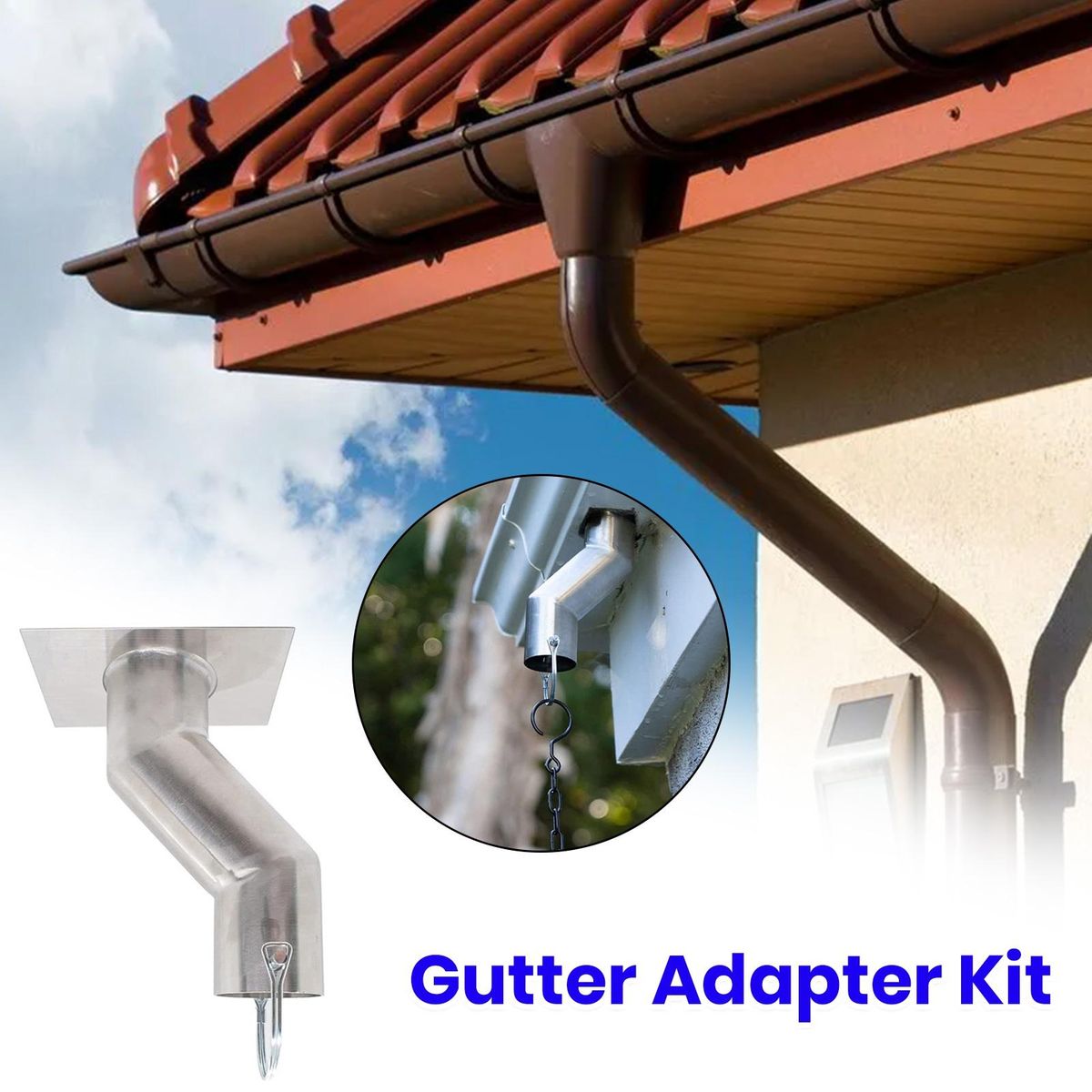 Our rain chain gutter adapter, the perfect solution for effectively managing heavy rainwater. this innovative product is specifically designed to direct storm gutter water into the rain chain and subsequently into the drainage area. .