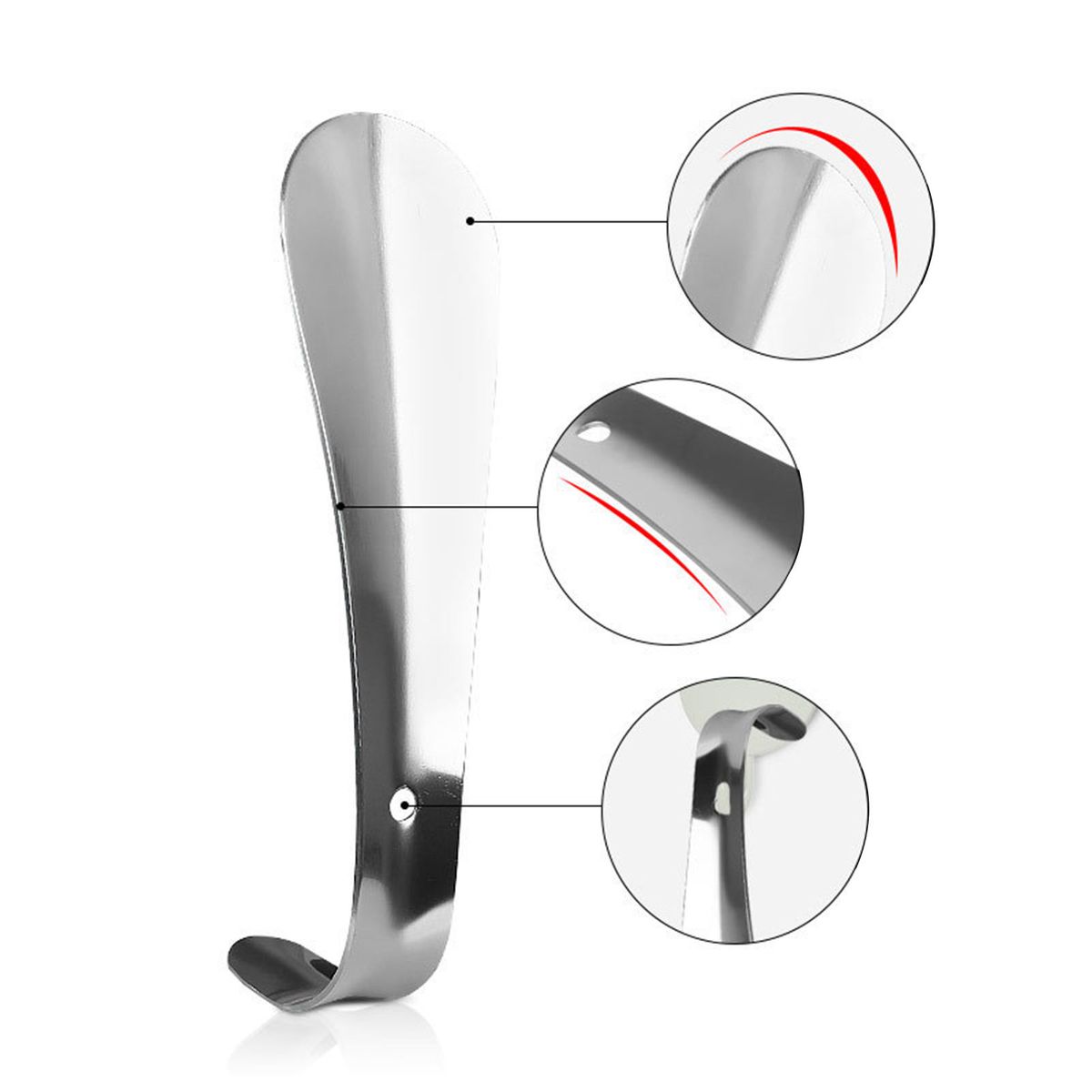 Material: Stainless steelType: ShoehornApllication: Most ShoesFeatures: Smooth surface, Streamlined, Hook design