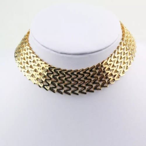 This beautiful choker comes with a multi strap neck tie. It features a double detail pendant and is suitable for day or night. Remember to coat the metal parts with nail varnish to avoid tarnish due to sweat or sunshine. Limited stock and very affordable.