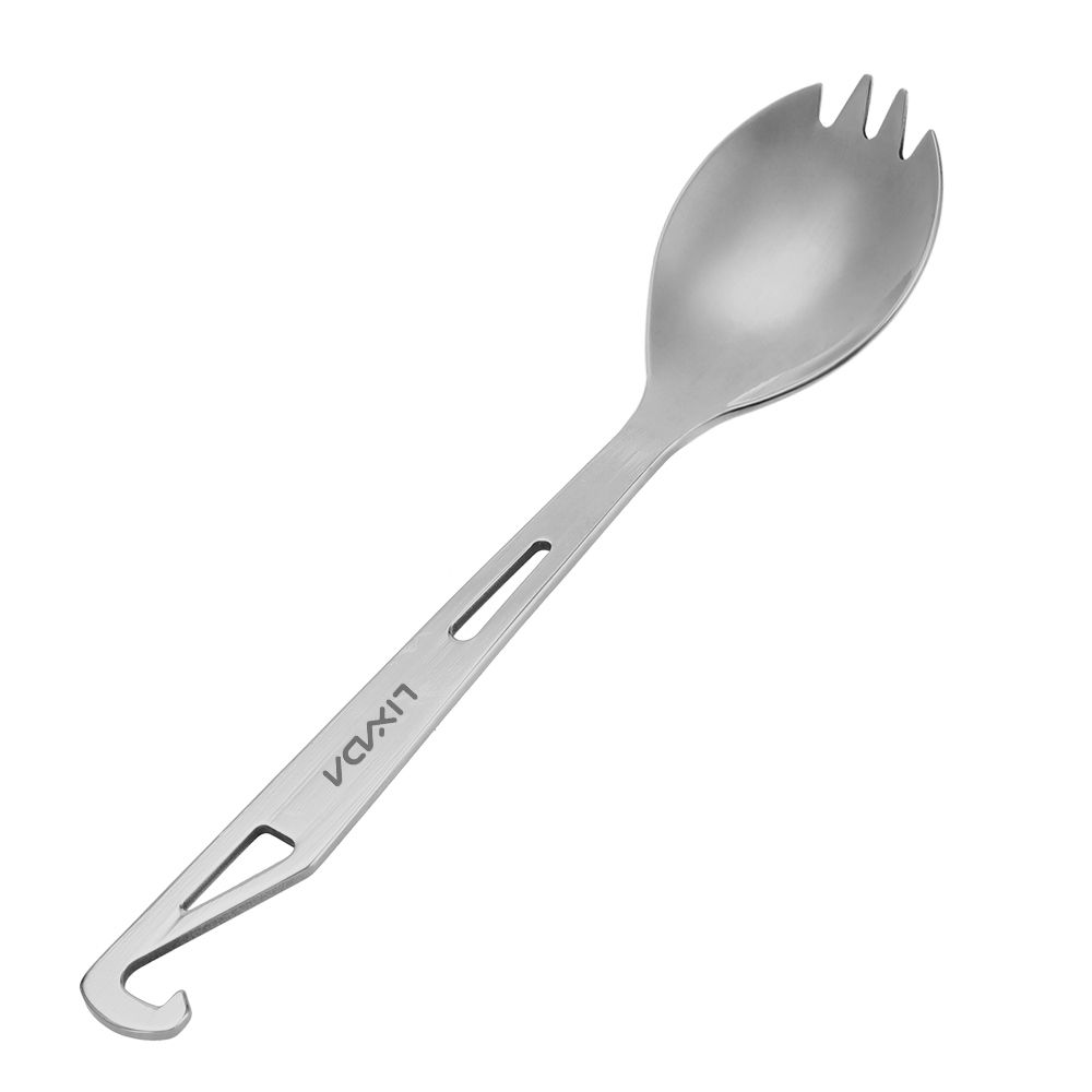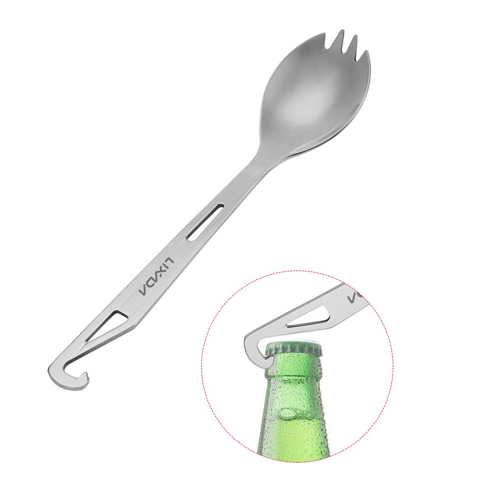 This spork integrates the functions of fork, spoon and bottle opener. It is made of stainless steel, very durable to use, great for outdoor camping, hiking, backpacking.