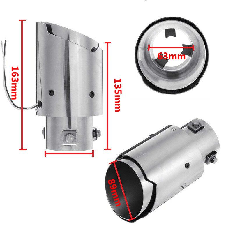 Stainless steel straight edge 63mm luminous tail throat LED Car Exhaust Pipe Head