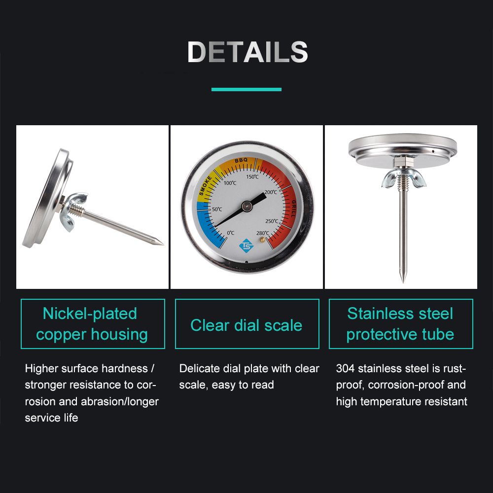 This dial thermometer has a temperature scale from 0 to 280℃, clear scale and accurate pointer makes it easy to read.