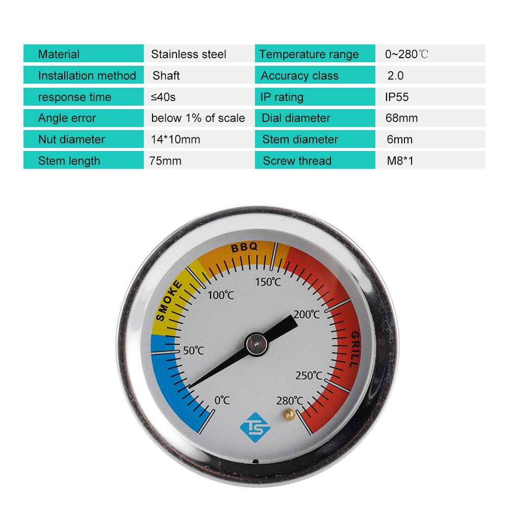 68mm/2.67in dial size and 75mm/2.95in long stem with M8 thread, It is easy to install by simply inserting the thermometer into the pre-drilled hole.