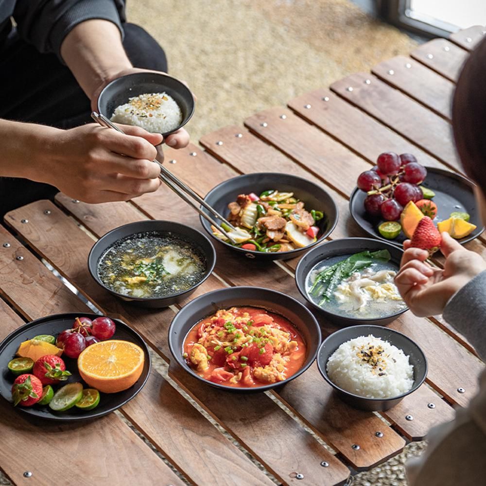 Buy Stainless Steel Ti-coated Tableware Set Outdoor Portable dinnerware Kit Camping Picnic BBQ Bowl and Plate Kits with Storage Bag in Nigeria