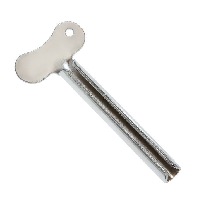 Mini Metal Tube Squeezer Key with a hole on it, great for storing and carrying.