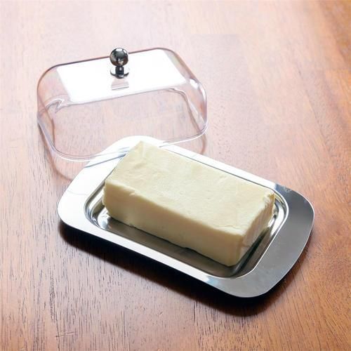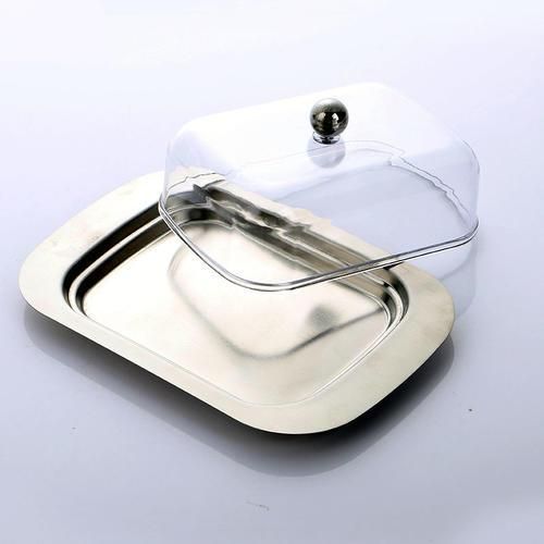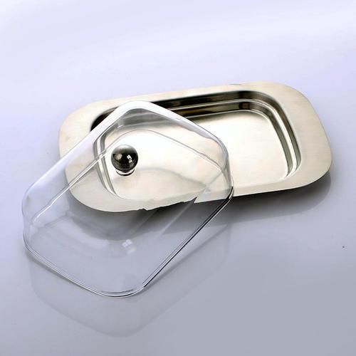Stainless Steel Transparent Butter Box Bread Box Container Cheese Server Storage Tray With See Through Acrylic Easy Lid Storage-Dishes & Plates
