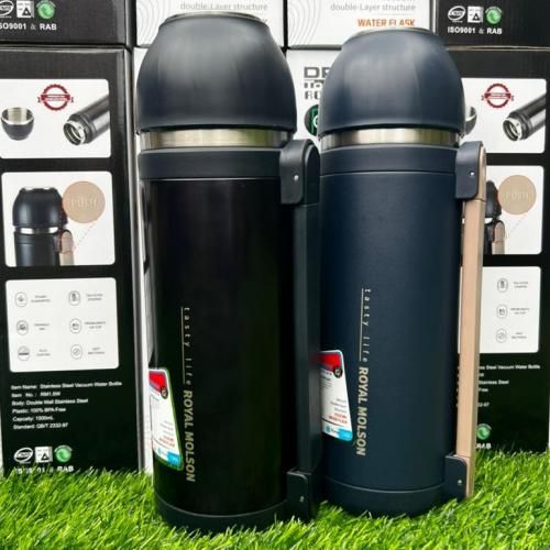 Stainless steel vaccum water bottle is main water & Tea 1500ml double wall stainless steel is a coated it has a premiumst lid cup with a tea filter stopper antibacterial triangle 360 it retain hot water for long. New look of dragon water flask