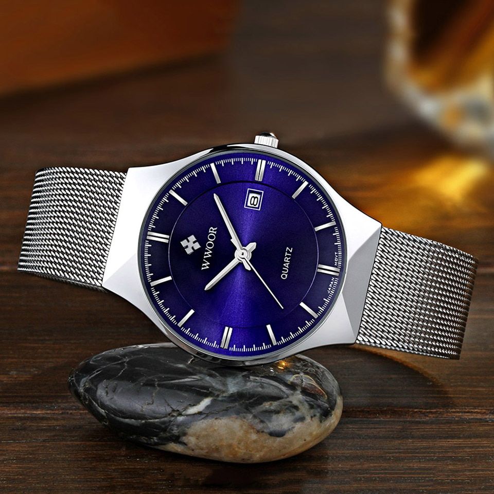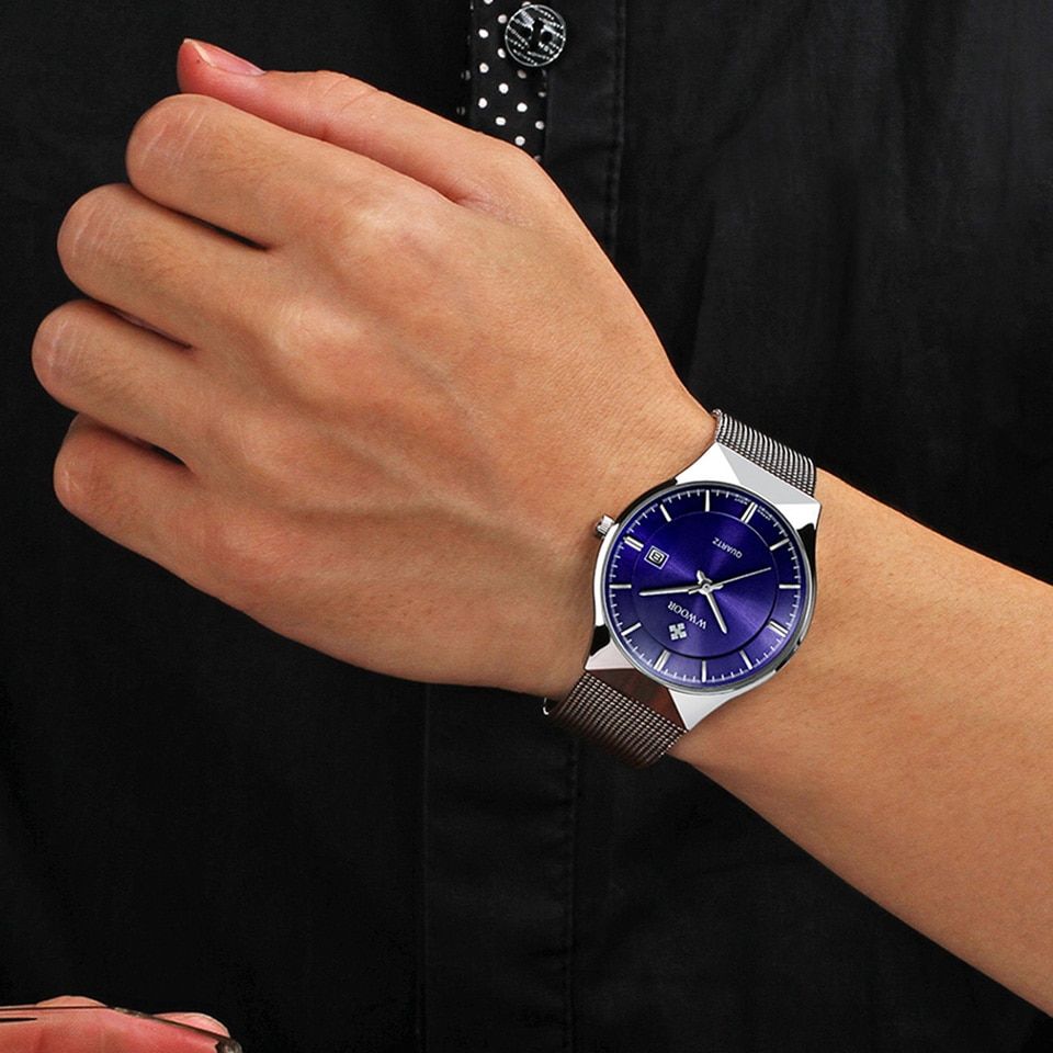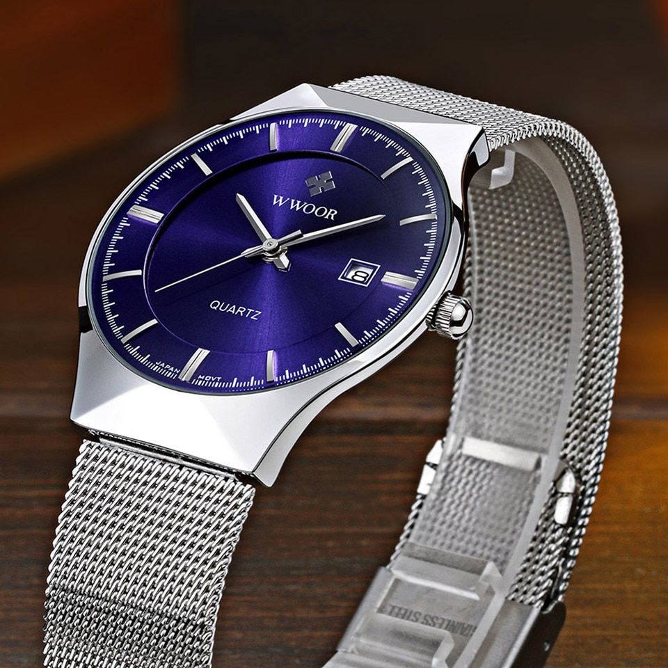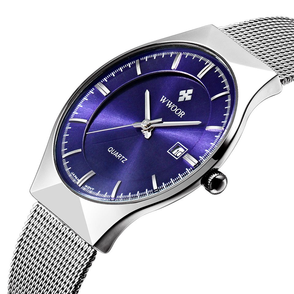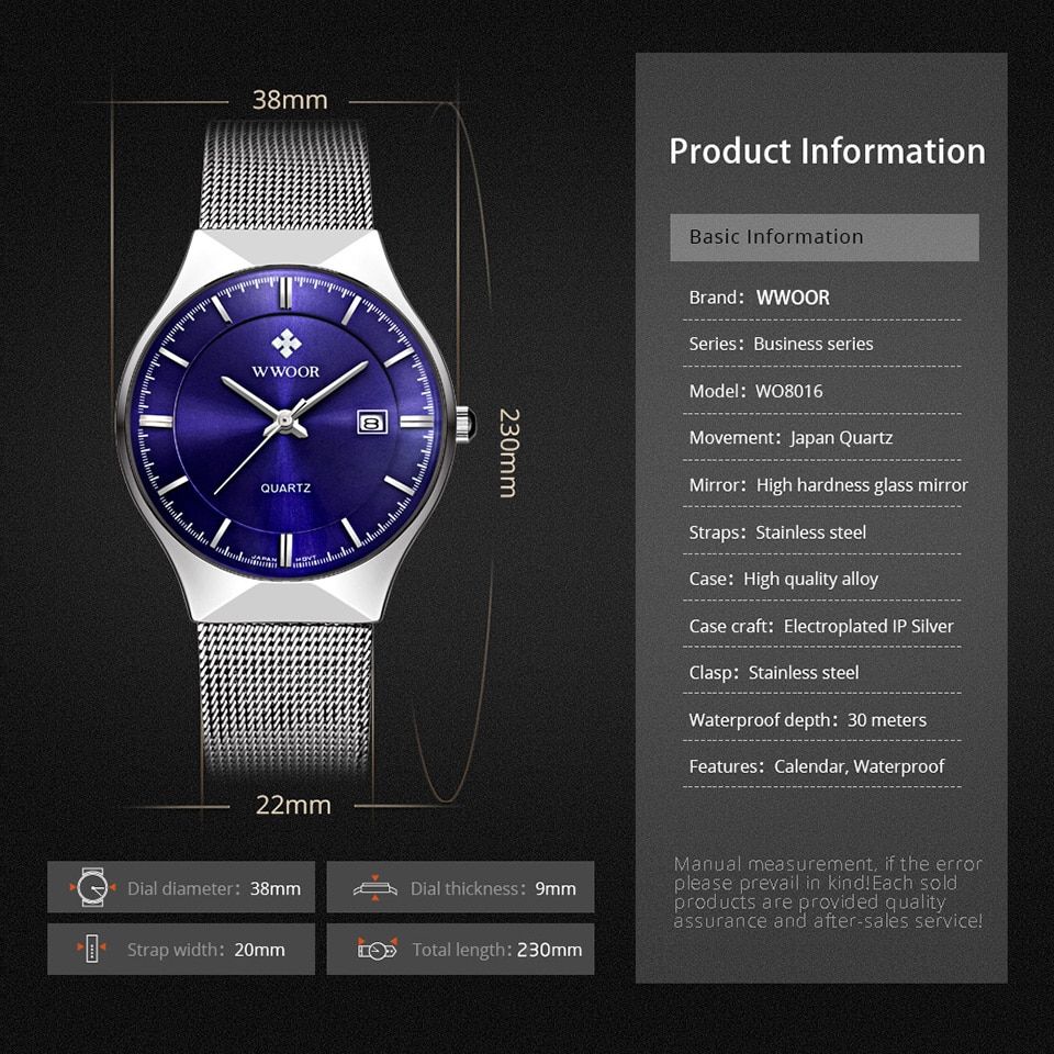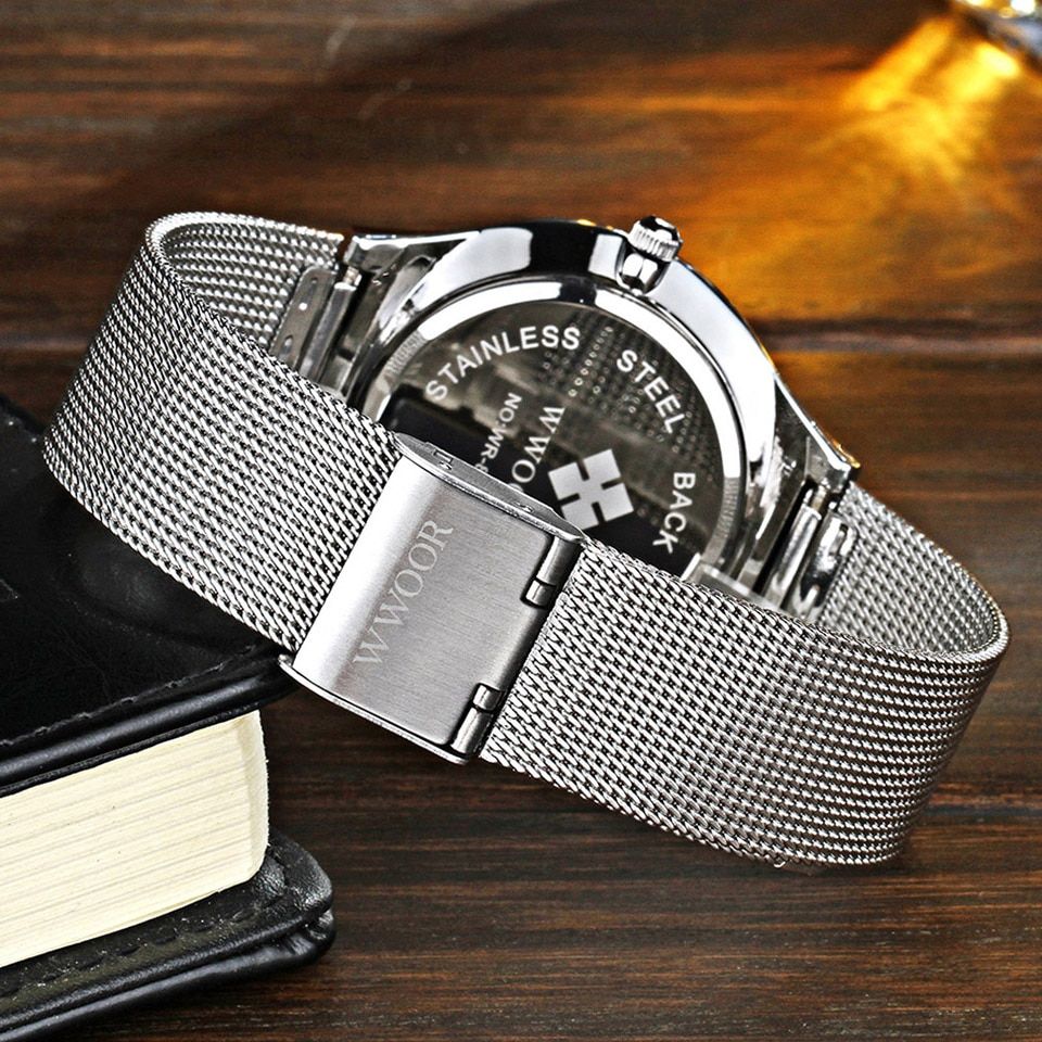 1X WWOOR Stainless Steel Watch for Man Quartz Analog Waches Ultra Slim Style Wristwatch JAPAN Movement Watch Male Relogio Masculino