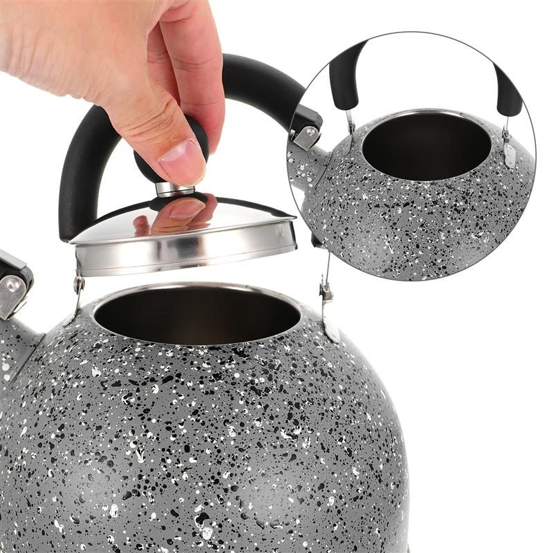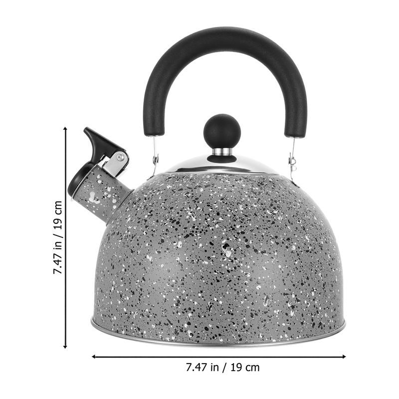 Description This is a whistling tea kettle which is made of high-quality stainle steel material for durable and practical to use. With comfortable handles, it is easy for you to hold. Short time waiting and a more efficient tea or coffee brewing for you! Ergonomically designed handle makes it easy to hold! Features -Color: Light Grey. -Material: Stainle steel. -Size: About 1 9x19x23cm/ 7.47x7.47x9.04 inch. - Comfortable and heat-insulated handle design, durable and anti-scalding . - Automatic whistle when water boils, safe and reliable . - Food grade material, high temperature and corrosion resistance . - The large-caliber spout can be directly filled with water, which is time-saving and fast, safe and sanitary . - The bottom has good heat resistance and long service life, suitable for induction cookers, gas stoves, etc. Packing list