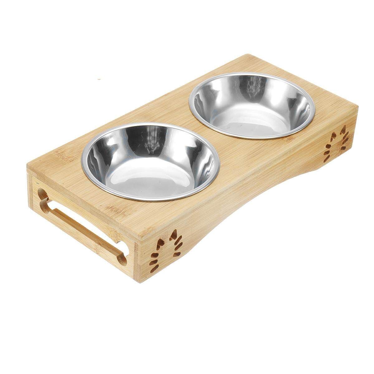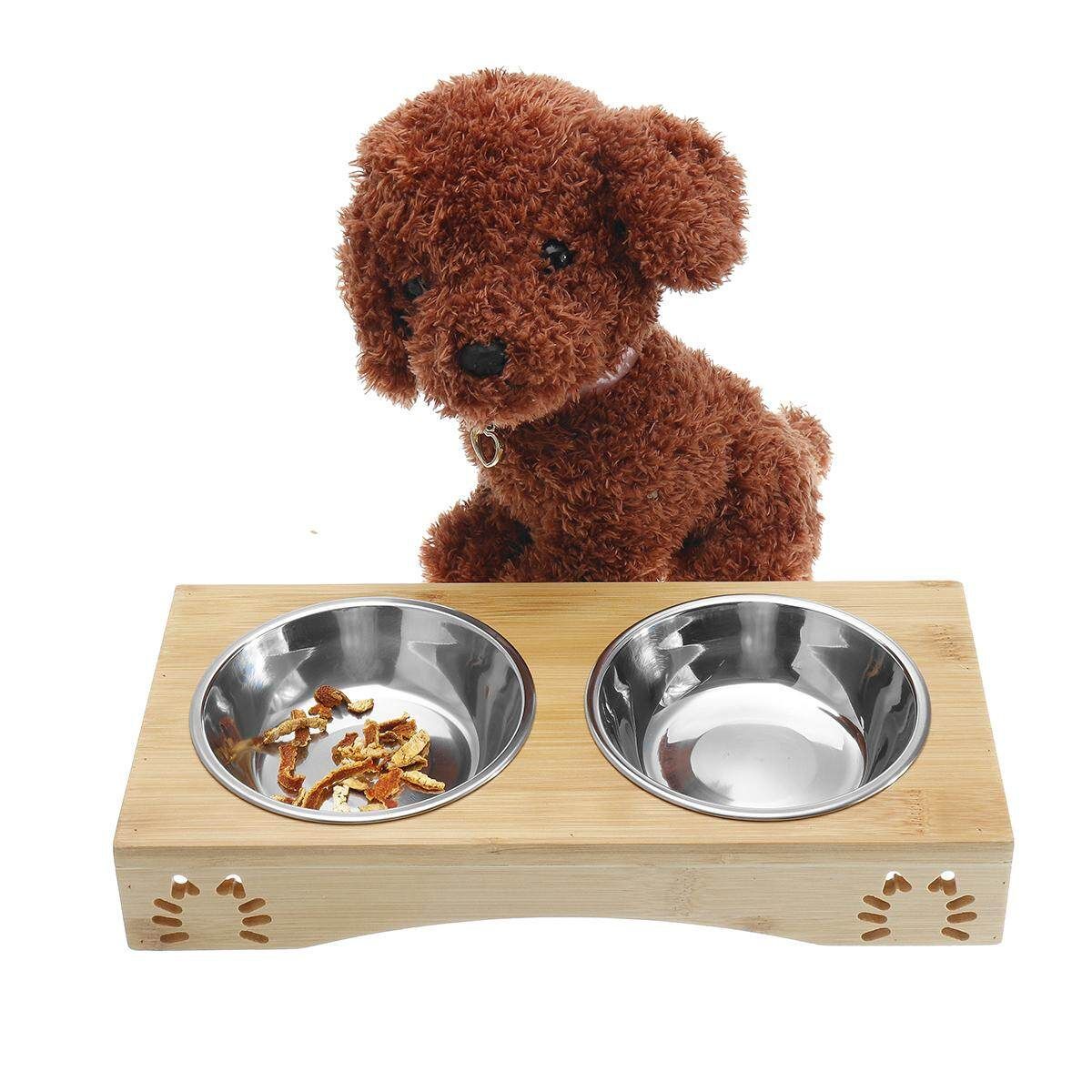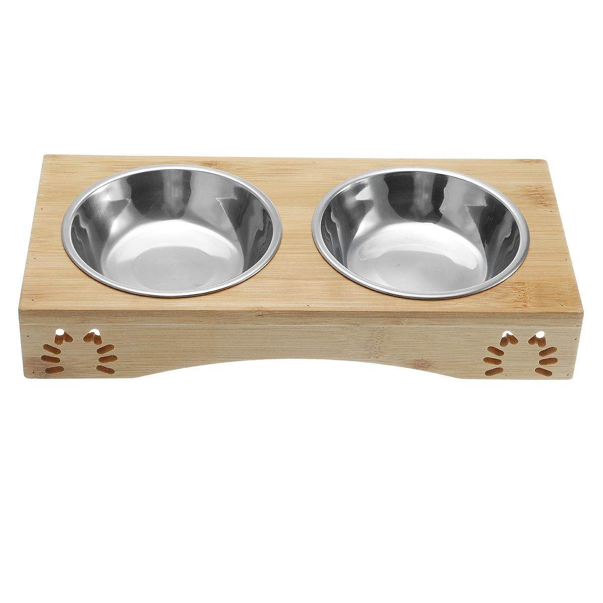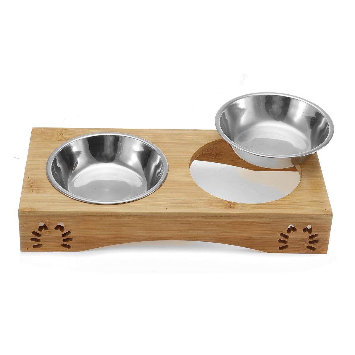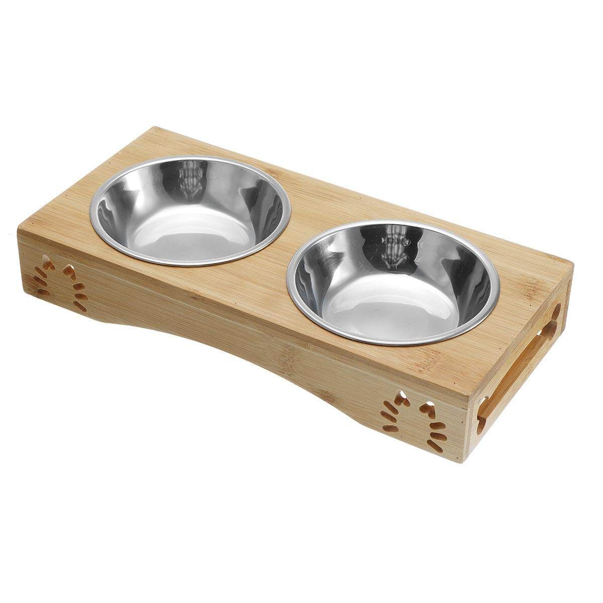 1x Stainless Steel Wood Pet Cat Dog Feeder Bowl