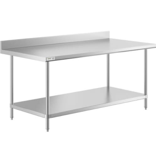 Built tough to handle heavy volume with ease, this work prep table is constructed with 18-gauge #430 stainless steel for easy cleaning, resilience against wear, and lasting performance.Table top features rounded edges on the front and back for enhanced working comfort, plus a 1-1/4" tall backsplash to contain spills and minimize cleanup. Also includes a convenient, adjustable-height galvanized under-shelf for handy storage and quick access to items, and sturdy, galvanized legs with non-marring feet, protecting floors and eliminating wobble.The table measures 72 & rdquo; long, 24 & rdquo; deep, and 34-3/4" tall (36" with backsplash).Dimensions= 1800 x 800 x 850 + 100mmFast and easy assembly.Includes: Stainless steel table with base, instructions, and hardware for assembly.***This product is designed and finished for use in a commercial environment. Therefore, slight surface imperfections such as scratches, scuffs, and indentations may be present. This is normal and to be expected on products of this nature, and does not represent compromised quality or workmanship.***