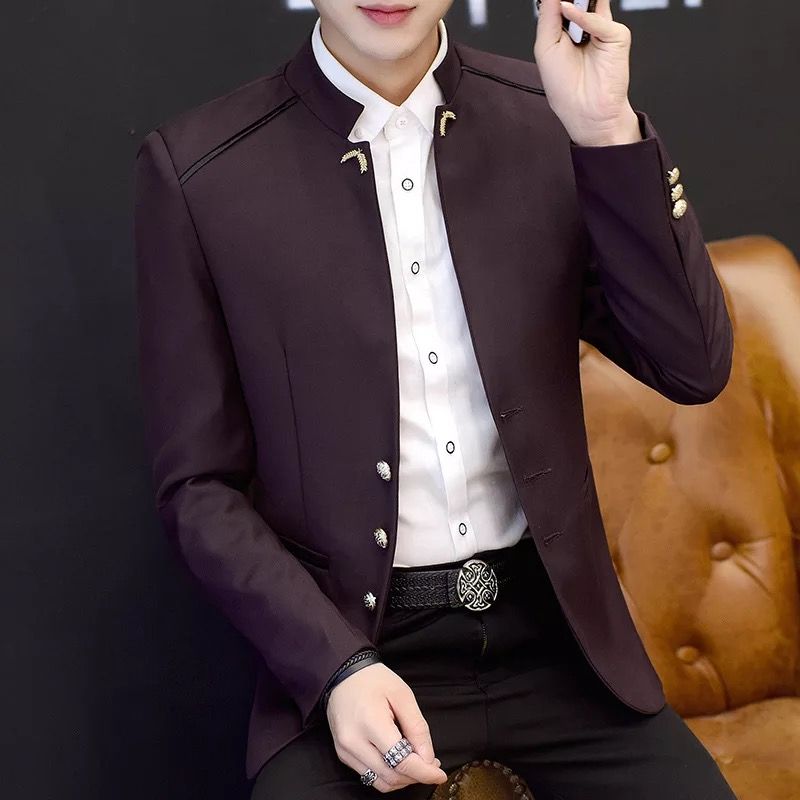 Buy Stand Collar Slim Suit Men's Wedding Dress - Red Wine in Nigeria