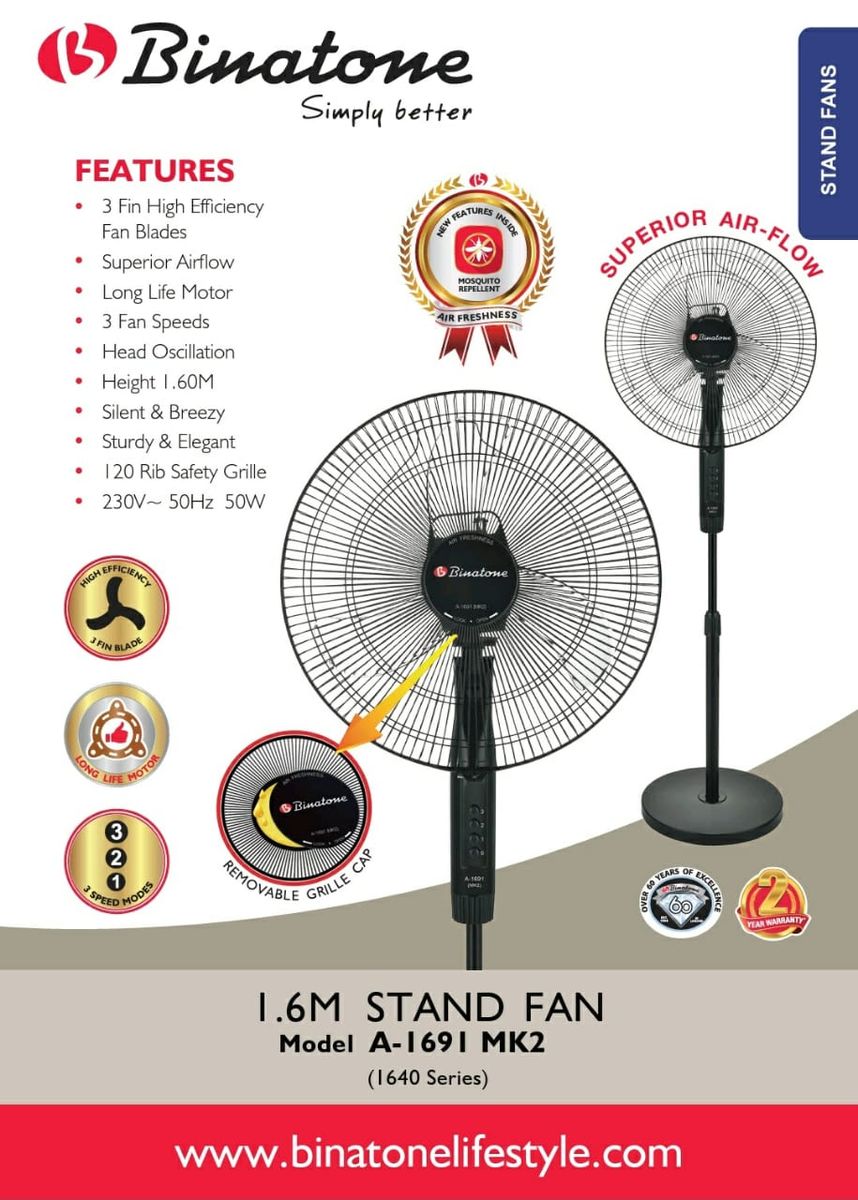 The Binatone Stand Fan has a silent operation which makes it suitable in all environments; you can sleep peacefully for longer without any sort of noise disturbance. One amazing advantage of having this stand fan is that it gives you the freedom to move around with ease. You can focus the Binatone Stand Fan to concentrate on a particular person or area for satisfying an immediate need. With 50 watts of power running this fan and long life motor, you can be sure of high performance for a long period of time. Buy the Binatone Stand Fan - A-1691 on rehmie at the best price in Nigeria for relief from heat during the hot season.