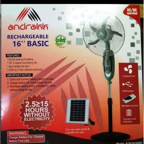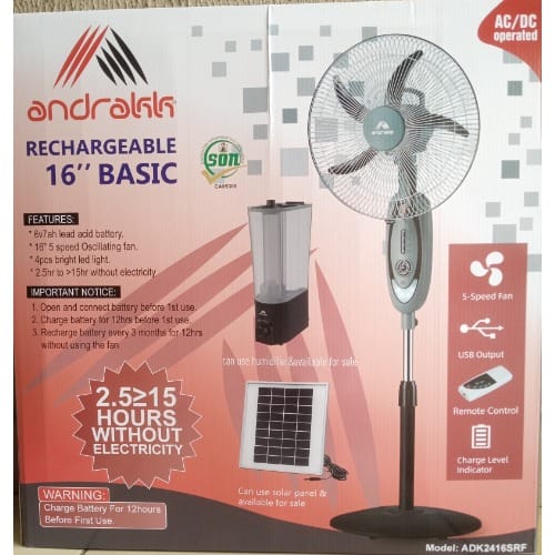 Buy Standing Rechargeable Fan With Solar Charging Port - 12V7AH - 16 Inch in Nigeria